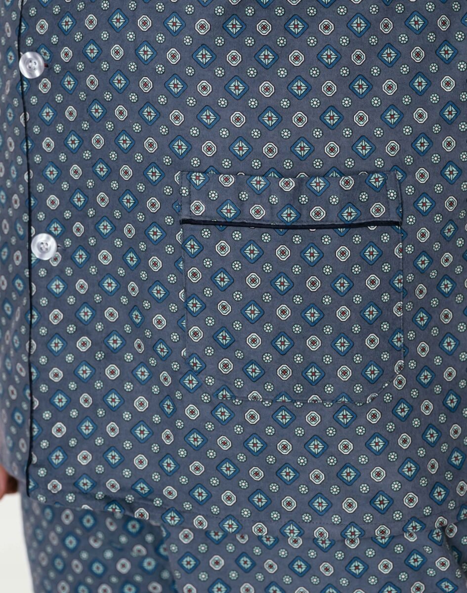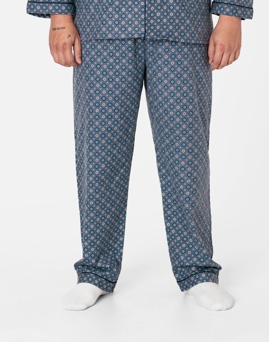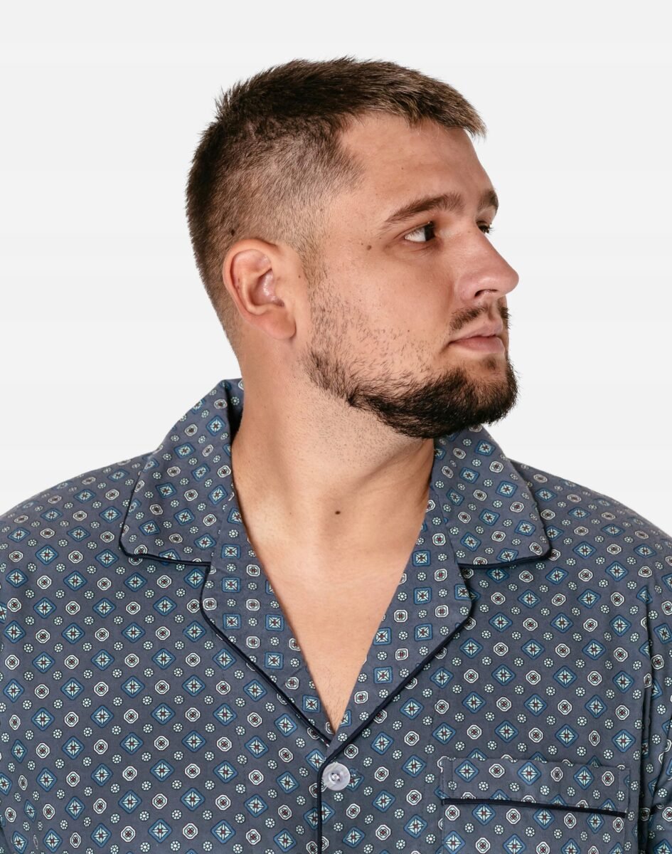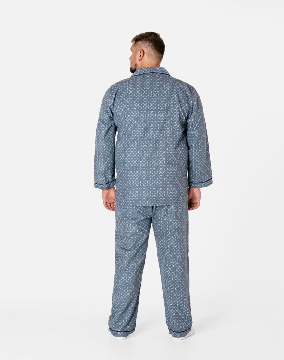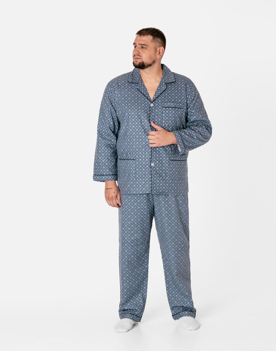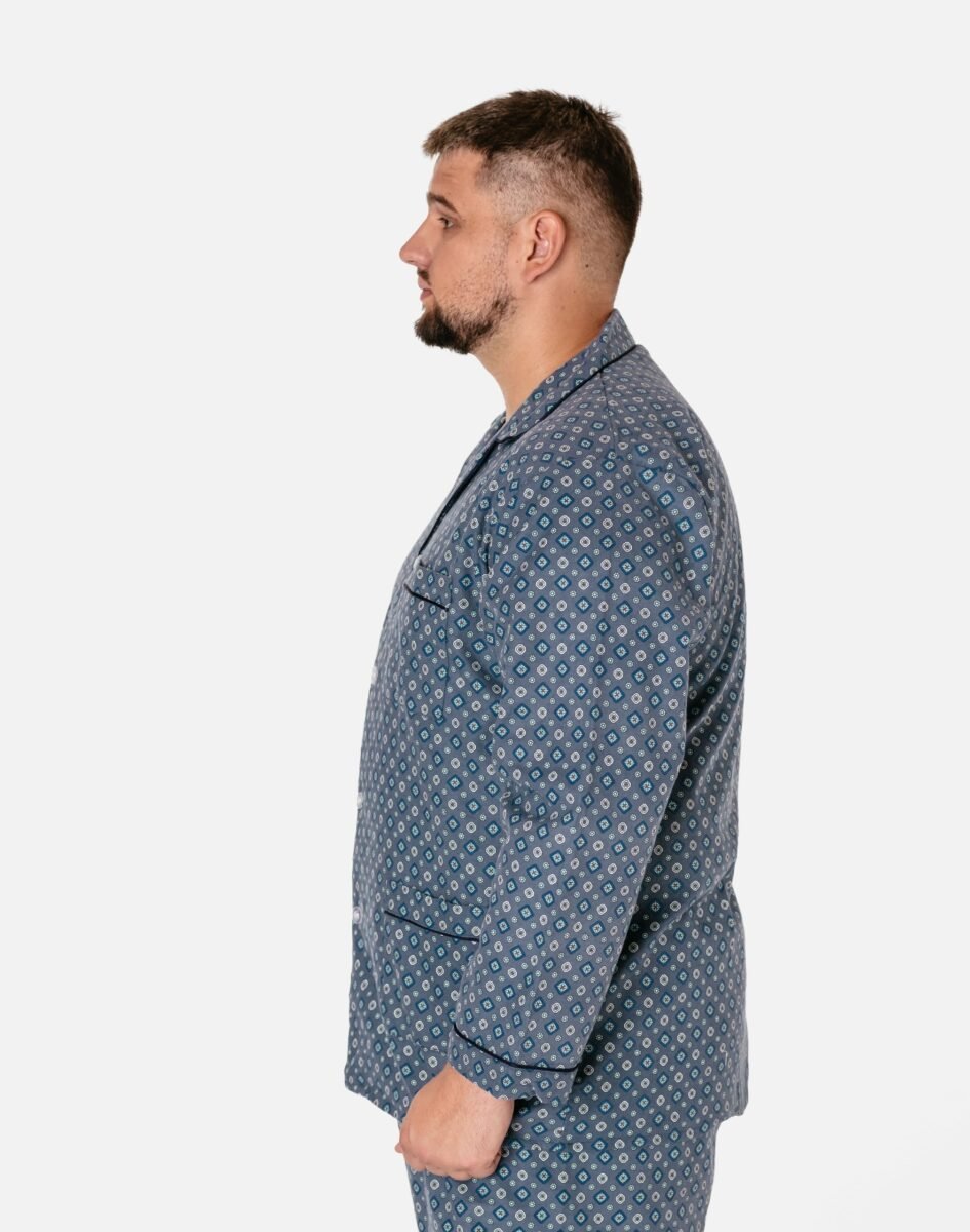 Ciepła, rozpinana, niezwykle przyjemna w dotyku (co ma bardzo duże znaczenie, gdy zakładamy ją na gołe ciało) dwuczęściowa piżama męska przeznaczona nie tylko jako nocna garderoba do snu ale także i do codziennego krzątania się po domu. Rozpinana konstrukcja z długim rękawem umożliwia łatwe zakładanie i zdejmowanie, dodając praktyczności do stylu. Długie spodnie bez kieszeni na elastycznej gumce z rozpinanym rozporkiem doskonale dopasowują się do sylwetki, zapewniając swobodę ruchów. Uszyta z bardzo dobrej jakości ciepłego flanelowego materiału bawełnianego, który przepuszcza powietrze, pozwala skórze oddychać i zapobiega poceniu się ciała zapewniając komfort w czasie snu.