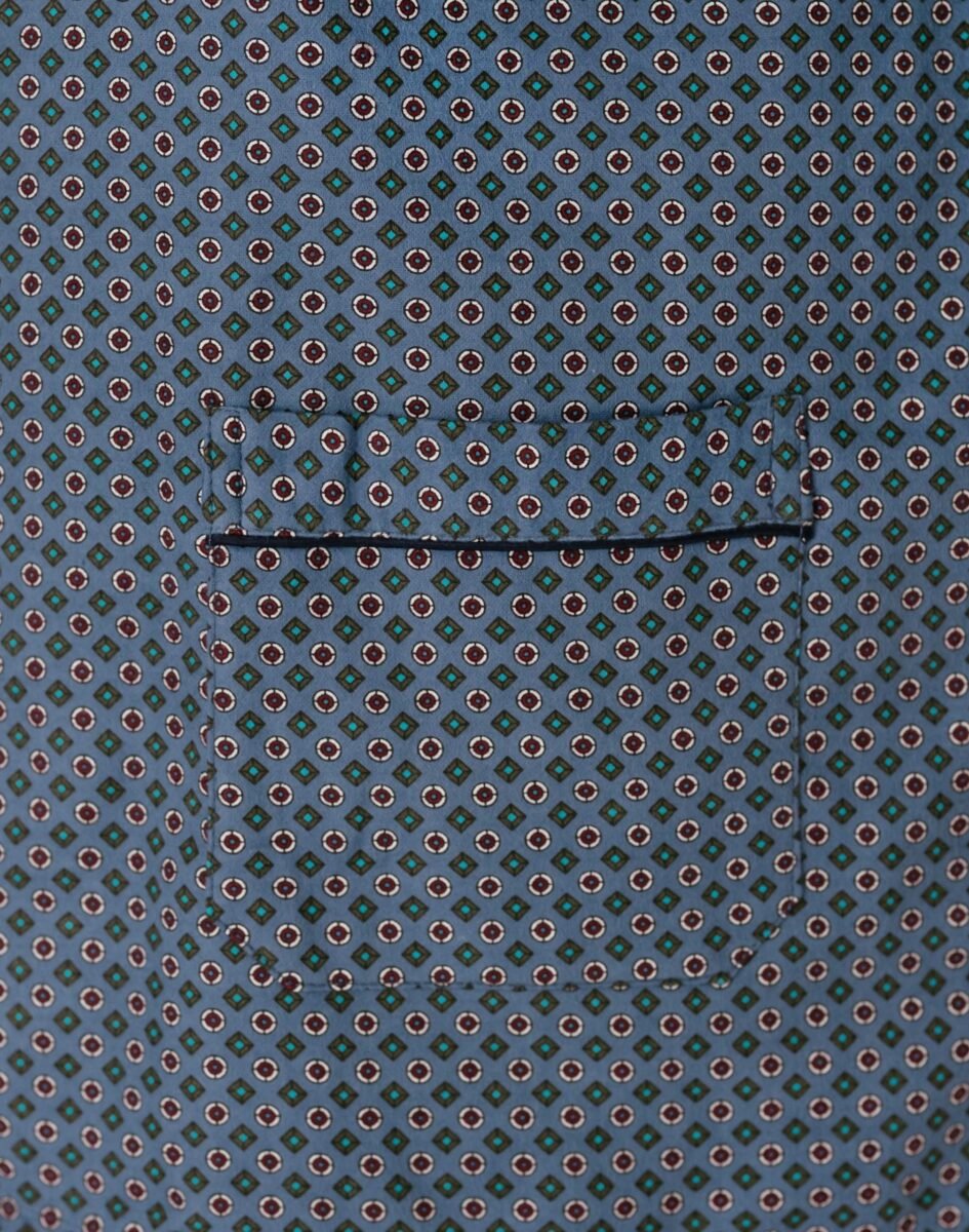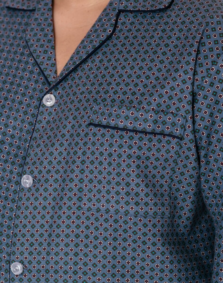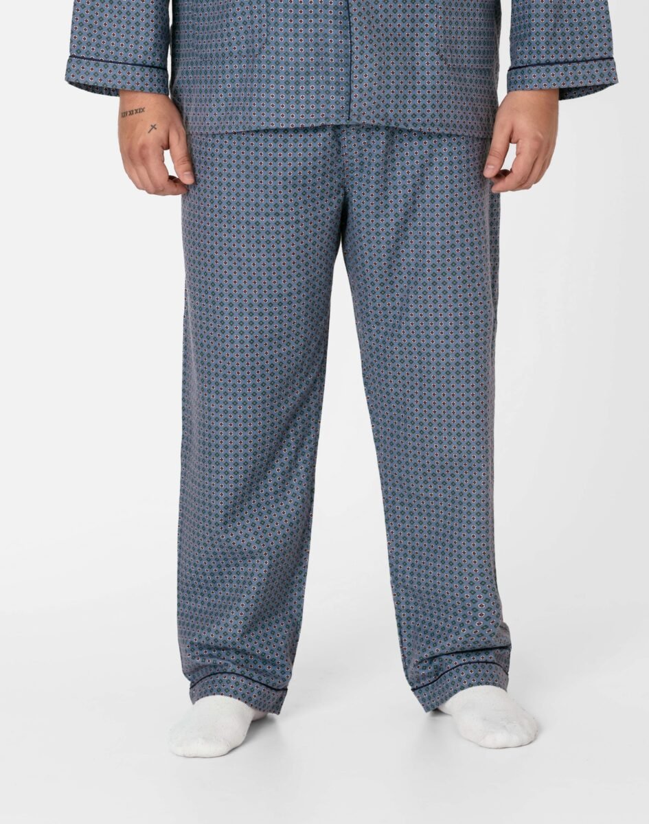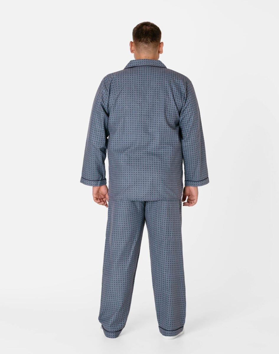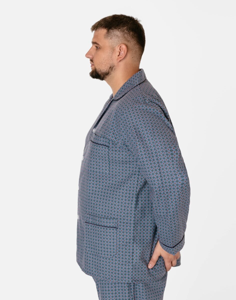 Ciepła, rozpinana, niezwykle przyjemna w dotyku (co ma bardzo duże znaczenie, gdy zakładamy ją na gołe ciało) dwuczęściowa piżama męska przeznaczona nie tylko jako nocna garderoba do snu ale także i do codziennego krzątania się po domu. Rozpinana konstrukcja z długim rękawem umożliwia łatwe zakładanie i zdejmowanie, dodając praktyczności do stylu. Długie spodnie bez kieszeni na elastycznej gumce z rozpinanym rozporkiem doskonale dopasowują się do sylwetki, zapewniając swobodę ruchów. Uszyta z bardzo dobrej jakości ciepłego flanelowego materiału bawełnianego, który przepuszcza powietrze, pozwala skórze oddychać i zapobiega poceniu się ciała zapewniając komfort w czasie snu.