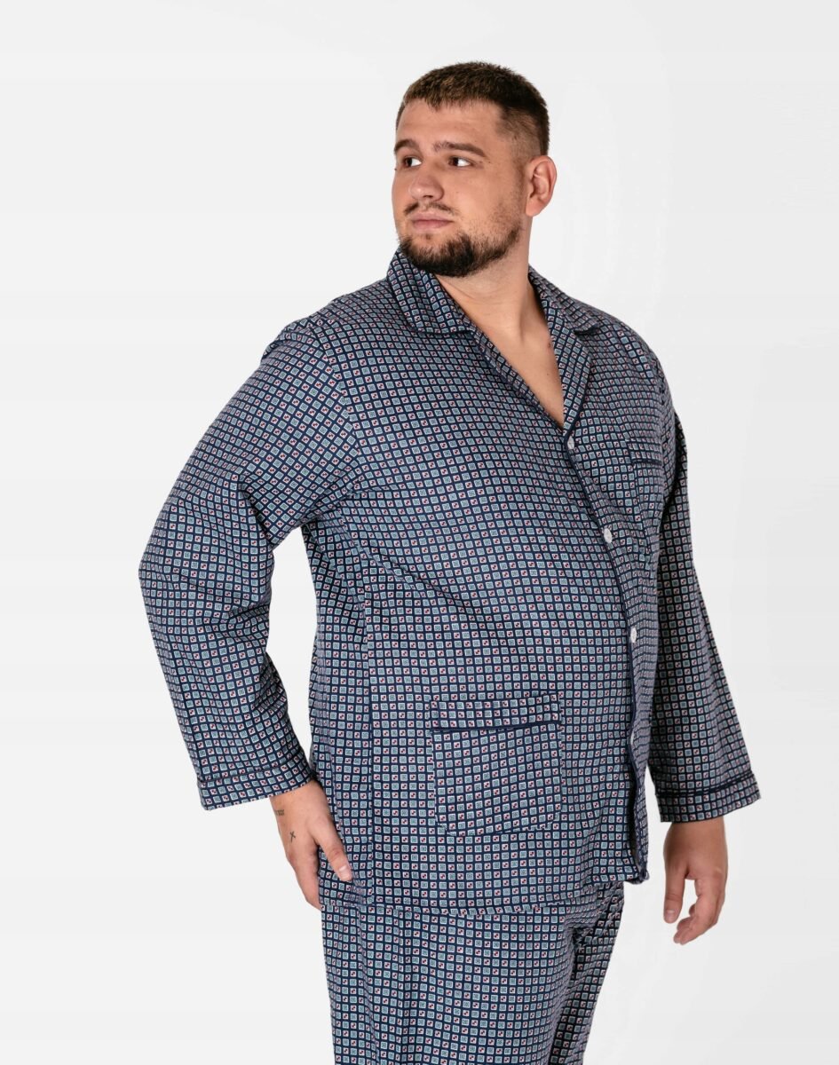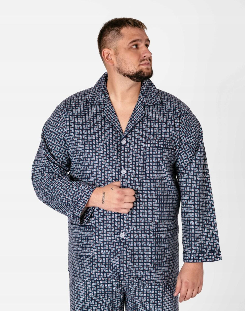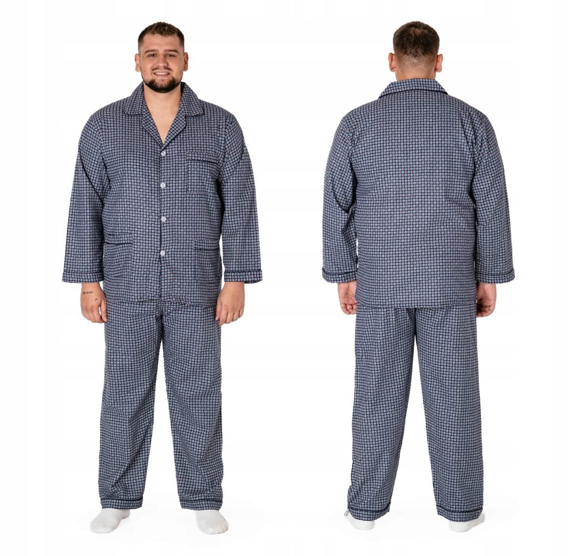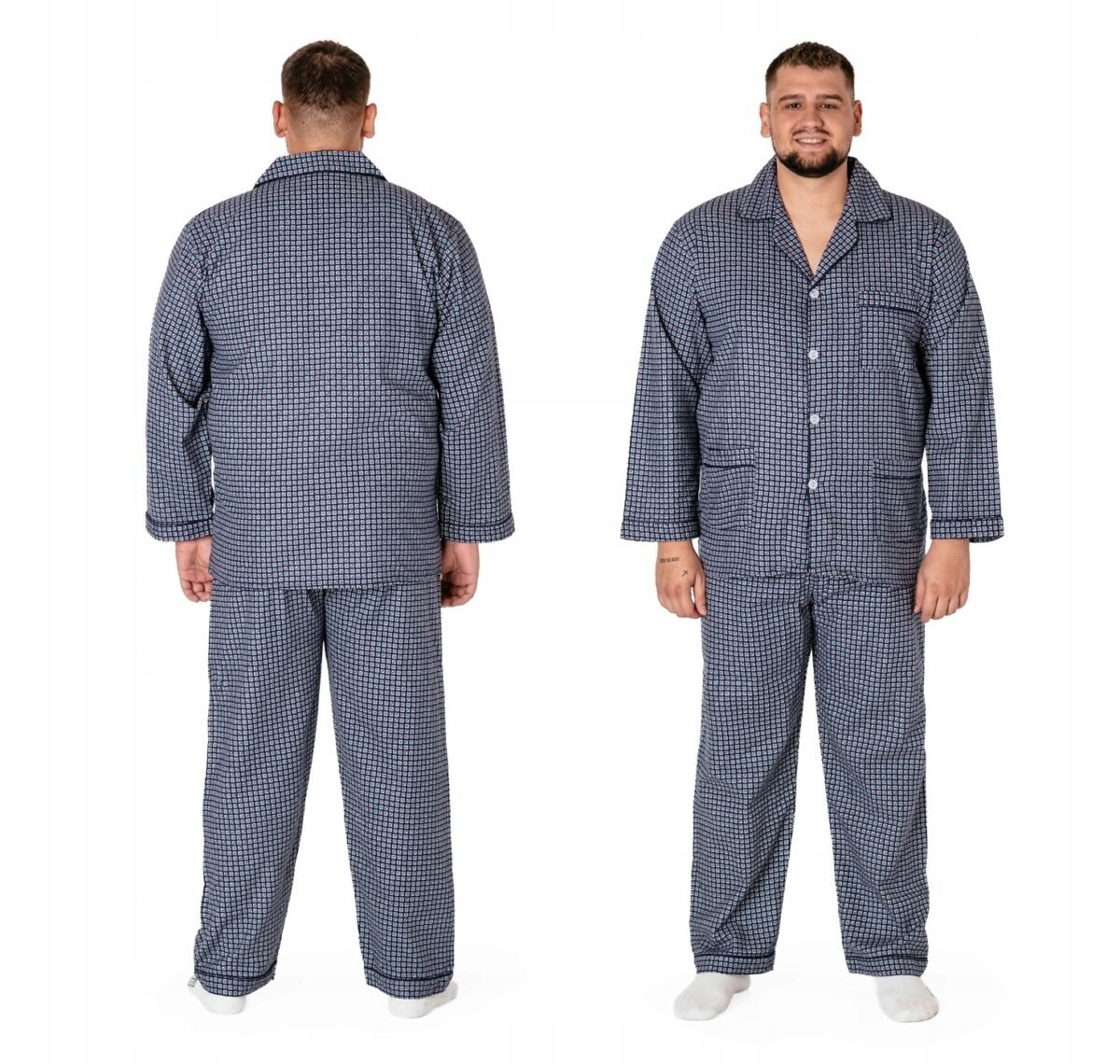 Duża Ciepła Piżama Męska Flanelowa Bawełniana Koszula + Spodnie 4033-9 5XL