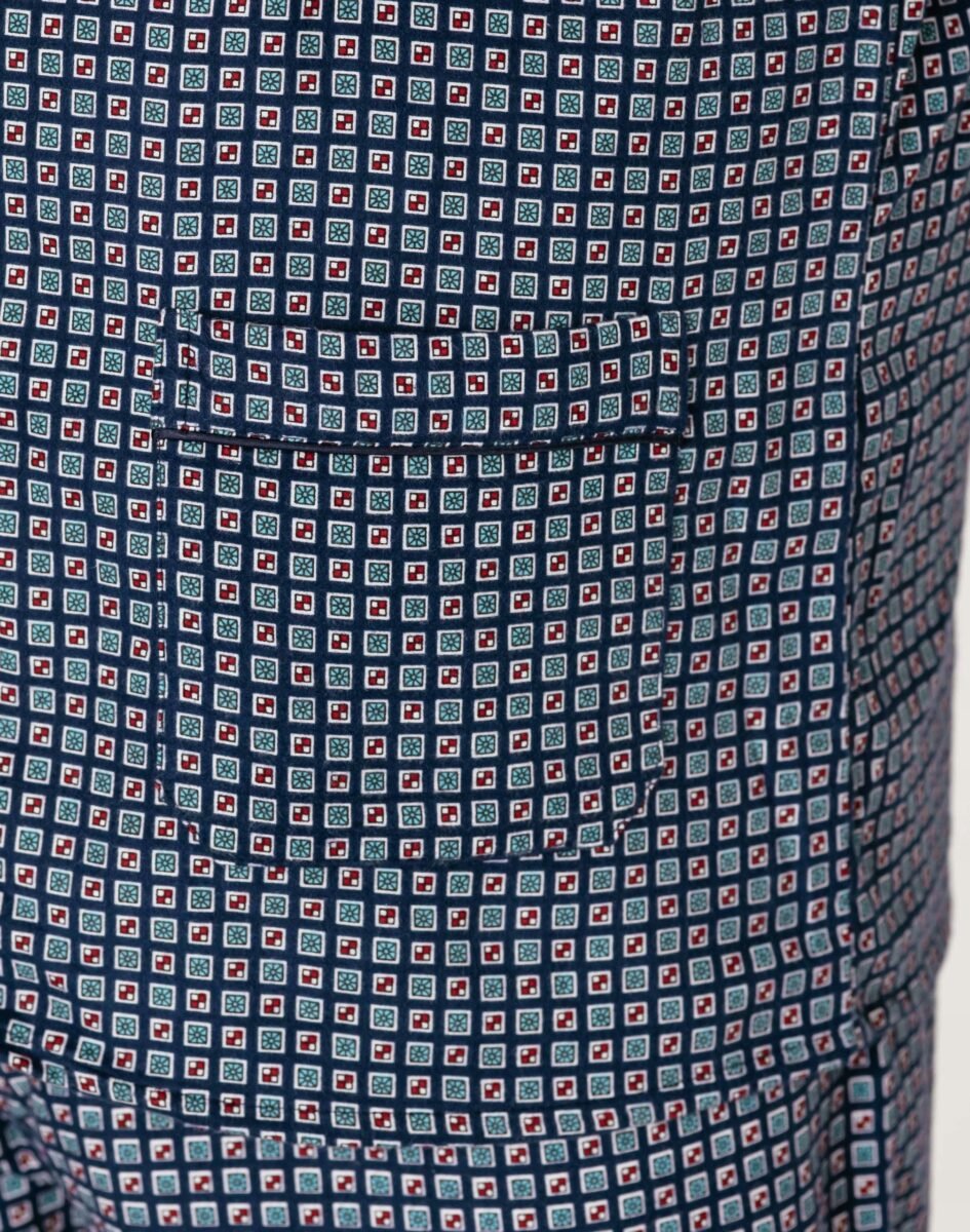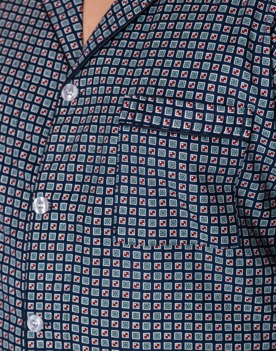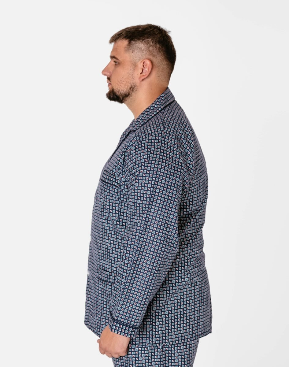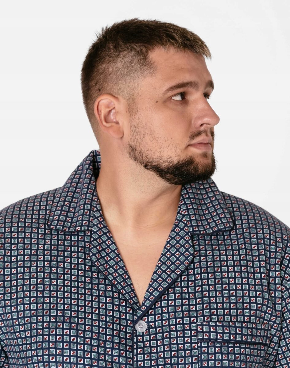 Ciepła, rozpinana, niezwykle przyjemna w dotyku (co ma bardzo duże znaczenie, gdy zakładamy ją na gołe ciało) dwuczęściowa piżama męska przeznaczona nie tylko jako nocna garderoba do snu ale także i do codziennego krzątania się po domu. Rozpinana konstrukcja z długim rękawem umożliwia łatwe zakładanie i zdejmowanie, dodając praktyczności do stylu. Długie spodnie bez kieszeni na elastycznej gumce z rozpinanym rozporkiem doskonale dopasowują się do sylwetki, zapewniając swobodę ruchów. Uszyta z bardzo dobrej jakości ciepłego flanelowego materiału bawełnianego, który przepuszcza powietrze, pozwala skórze oddychać i zapobiega poceniu się ciała zapewniając komfort w czasie snu.
