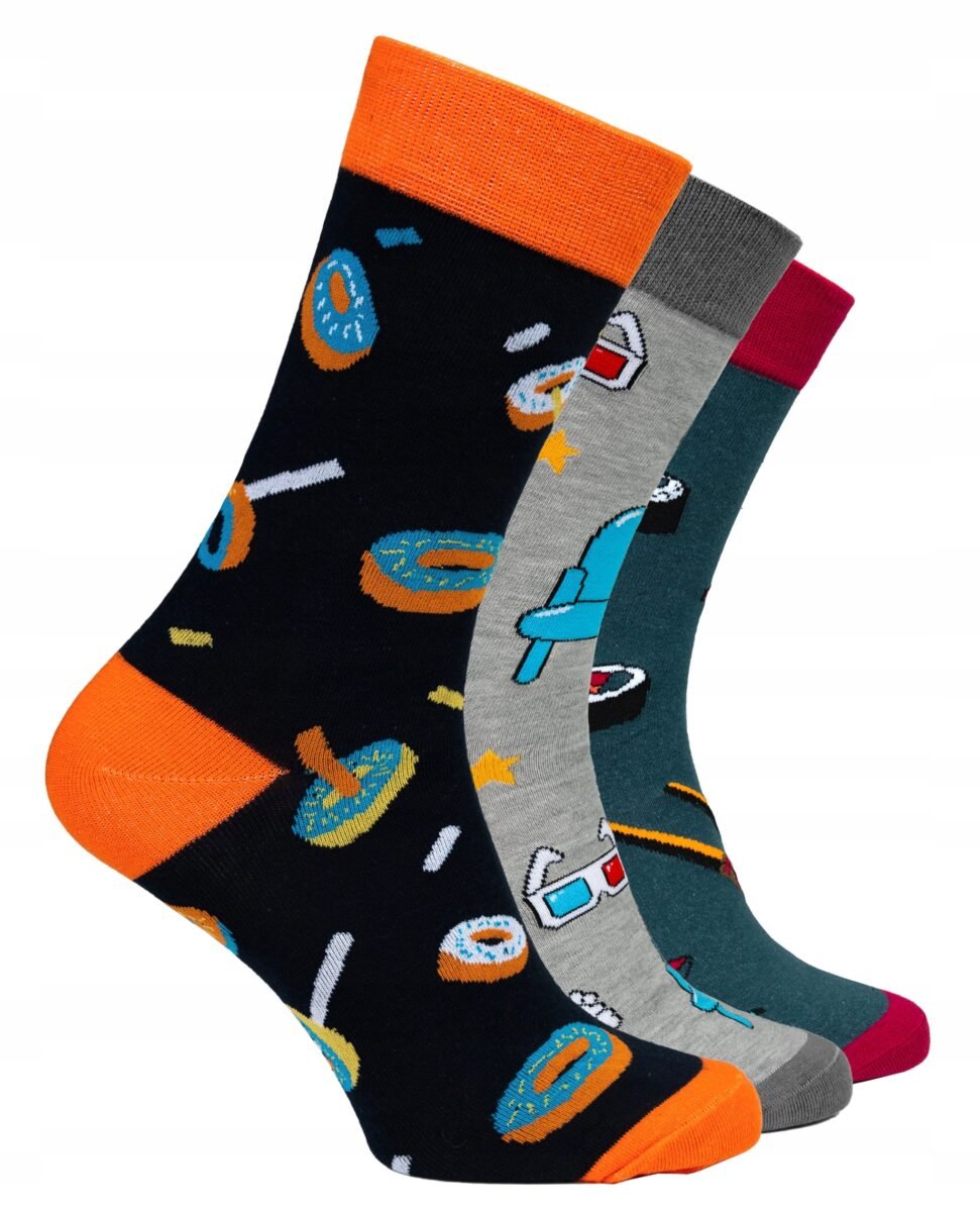 3 Zabawne Kolorowe Skarpety Męskie Bawełniane na Prezent !