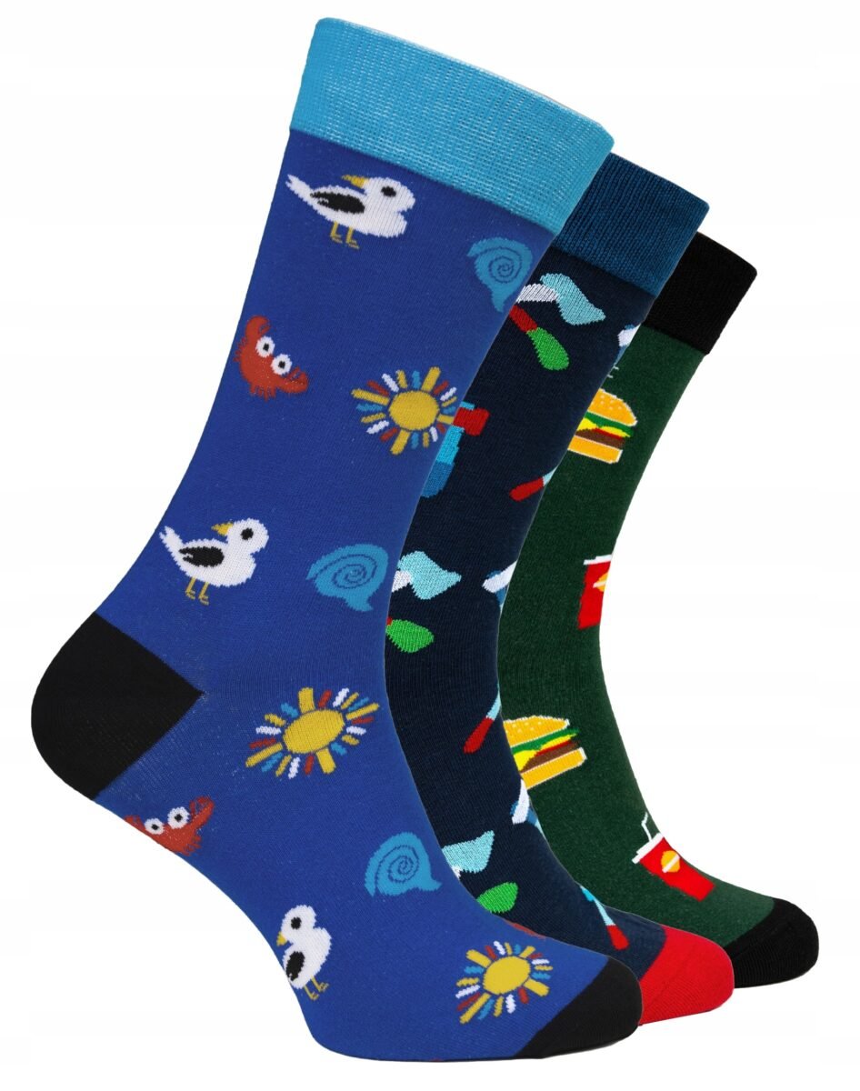 3 Zabawne Kolorowe Skarpety Męskie Bawełniane na Prezent !