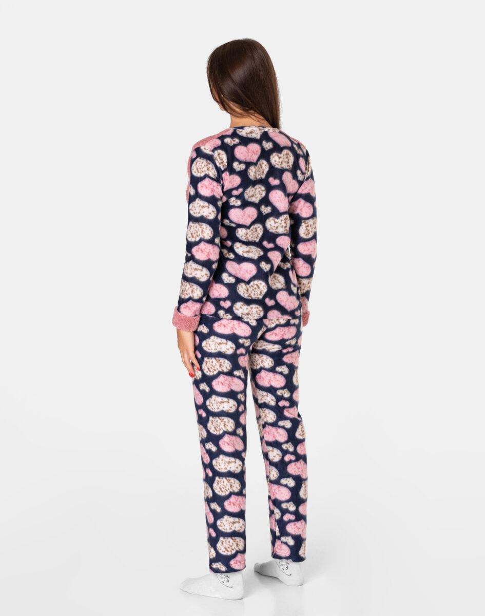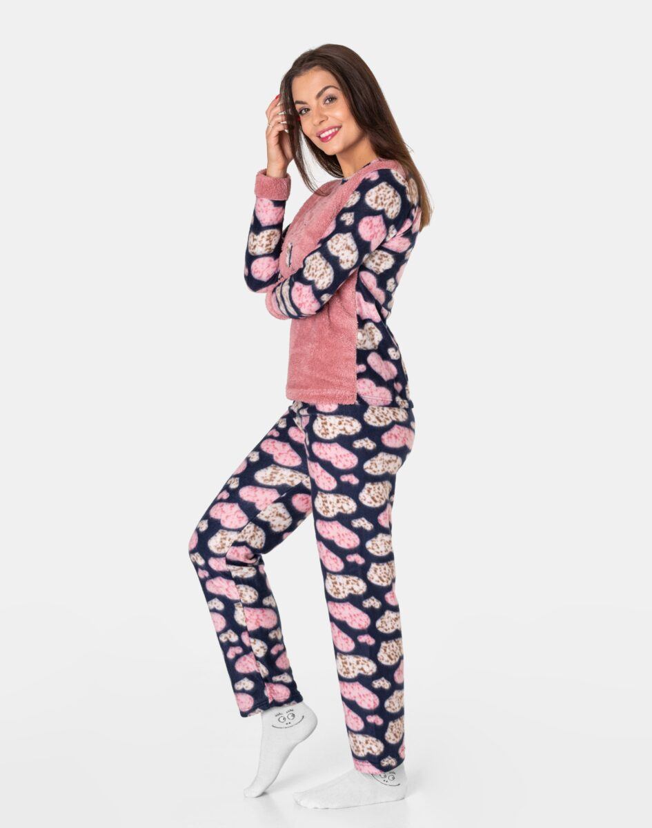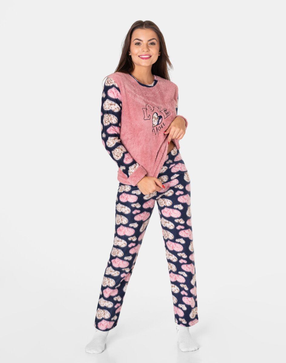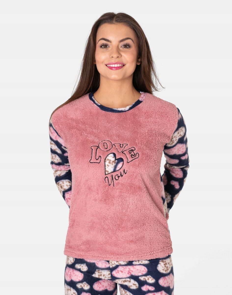 Ciepła, niezwykle przyjemna w dotyku (co ma bardzo duże znaczenie, gdy zakładamy ją na gołe ciało) dwuczęściowa piżamka polarowa damska przeznaczona nie tylko jako nocna garderoba do snu ale także do codziennego krzątania się po domu. Dwuczęściowa, uszyta z miękkiej, puszystej, przyjemnej w dotyku dzianiny polarowej i ciepłego futerka typu Wellsoft, łączącej w sobie skuteczną izolację przed zimnem oraz niską wagę. Jest wyjątkowo ciepła i skutecznie ogrzeje Twoje ciało nawet w najzimniejsze zimowe noce zapewniając komfort termiczny w czasie snu. Włókna polarowe tworzą miliony komórek powietrznych, które utrzymują ciepło wewnątrz zapewniając przez to doskonałą ochronę przed chłodem. Dodatkową zaletą piżamy z polaru jest to, że wysycha w bardzo szybkim tempie. Piżamka jest przez to bardzo ciepła, wygodna i oddychająca (utrzymuje ciepły i suchy mikroklimat skóry) a jednocześnie wyjątkowo lekka. Dzięki tym właściwościom skóra naturalnie oddycha natomiast mikroskopijne torebki powietrza w strukturze materiału utrzymują właściwą ciepłotę ciała. Zapewnia bardzo wysoki współczynnik ochrony termicznej w stosunku do wagi w porównaniu do innych np. frotowych czy welurowych piżam. Dołączona opaska na oczy ułatwia szybkie zasypianie, zapewnia spokojny głęboki sen a poranne promienie słońca nie rozbudzają. Dzięki opasce Twój sen może trwać znacznie dłużej nawet gdy dzień już w pełni.