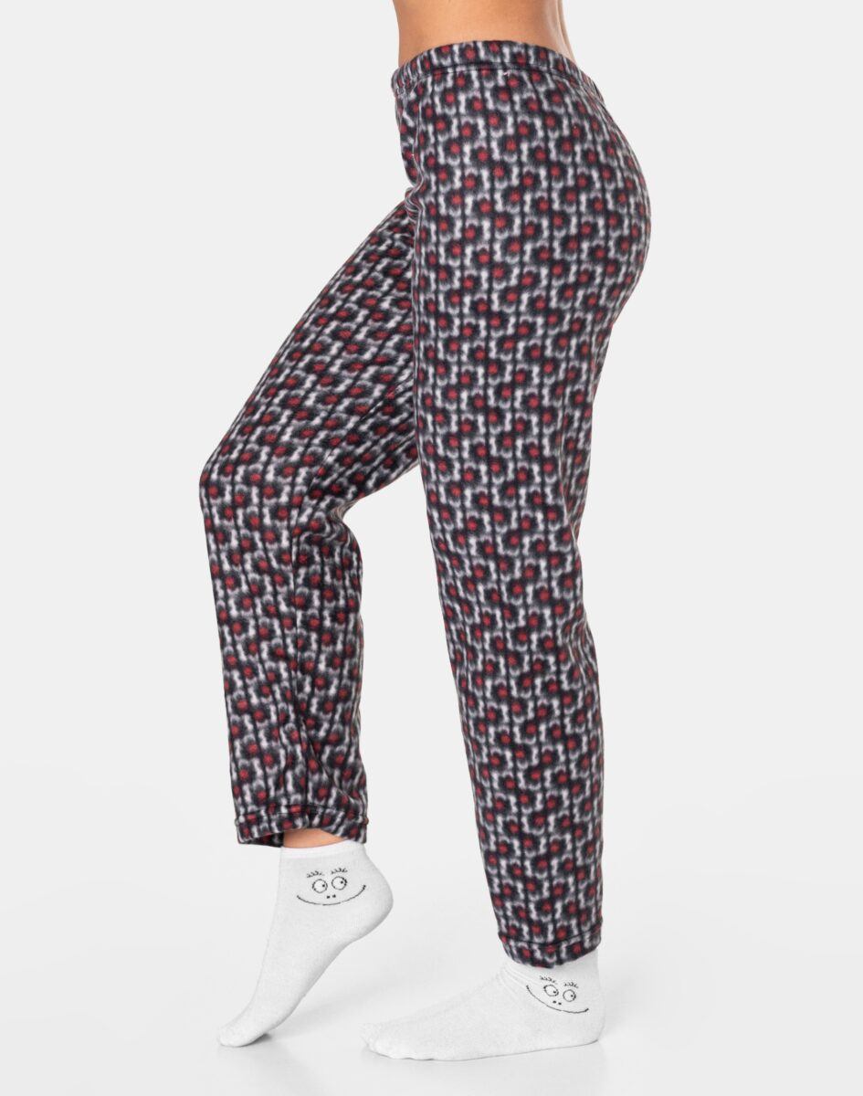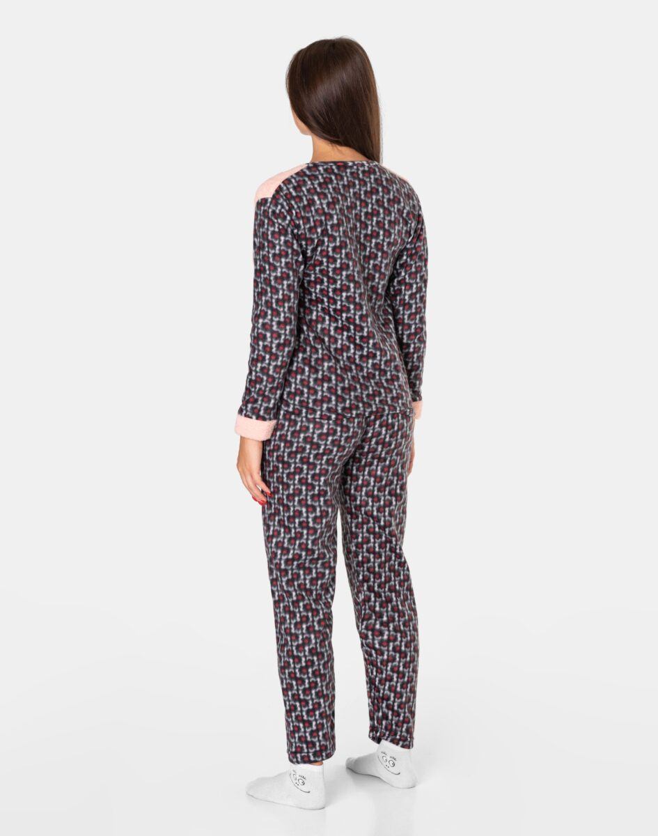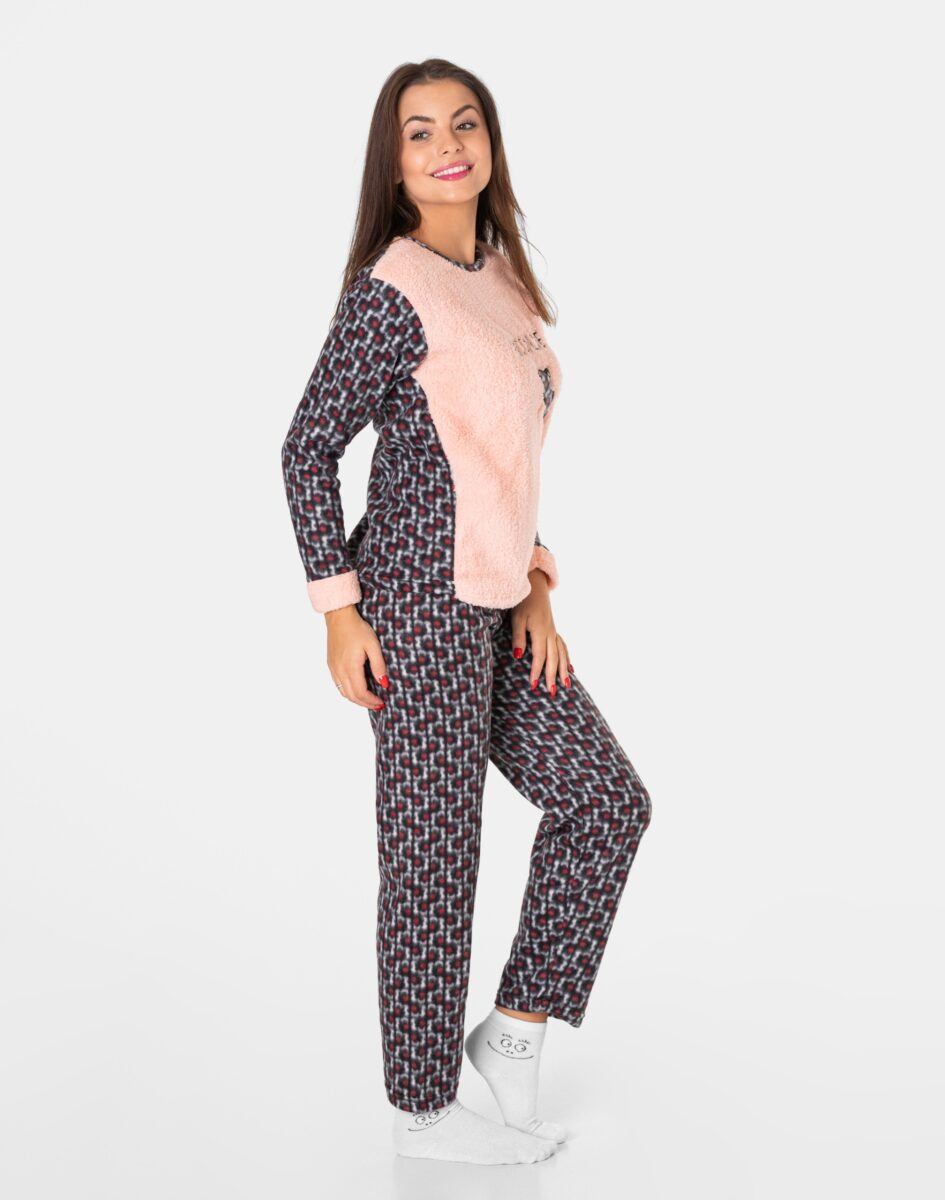Ciepła, niezwykle przyjemna w dotyku (co ma bardzo duże znaczenie, gdy zakładamy ją na gołe ciało) dwuczęściowa piżamka polarowa damska przeznaczona nie tylko jako nocna garderoba do snu ale także do codziennego krzątania się po domu. Dwuczęściowa, uszyta z miękkiej, puszystej, przyjemnej w dotyku dzianiny polarowej i ciepłego futerka typu Wellsoft, łączącej w sobie skuteczną izolację przed zimnem oraz niską wagę. Jest wyjątkowo ciepła i skutecznie ogrzeje Twoje ciało nawet w najzimniejsze zimowe noce zapewniając komfort termiczny w czasie snu. Włókna polarowe tworzą miliony komórek powietrznych, które utrzymują ciepło wewnątrz zapewniając przez to doskonałą ochronę przed chłodem. Dodatkową zaletą piżamy z polaru jest to, że wysycha w bardzo szybkim tempie. Piżamka jest przez to bardzo ciepła, wygodna i oddychająca (utrzymuje ciepły i suchy mikroklimat skóry) a jednocześnie wyjątkowo lekka. Dzięki tym właściwościom skóra naturalnie oddycha natomiast mikroskopijne torebki powietrza w strukturze materiału utrzymują właściwą ciepłotę ciała. Zapewnia bardzo wysoki współczynnik ochrony termicznej w stosunku do wagi w porównaniu do innych np. frotowych czy welurowych piżam. Dołączona opaska na oczy ułatwia szybkie zasypianie, zapewnia spokojny głęboki sen a poranne promienie słońca nie rozbudzają. Dzięki opasce Twój sen może trwać znacznie dłużej nawet gdy dzień już w pełni.