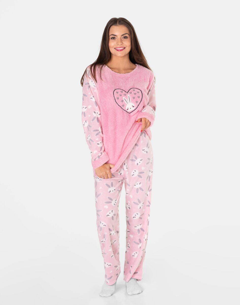 Ciepła, niezwykle przyjemna w dotyku (co ma bardzo duże znaczenie, gdy zakładamy ją na gołe ciało) dwuczęściowa piżamka polarowa damska przeznaczona nie tylko jako nocna garderoba do snu ale także do codziennego krzątania się po domu. Dwuczęściowa, uszyta z miękkiej, puszystej, przyjemnej w dotyku dzianiny polarowej i ciepłego futerka typu Wellsoft, łączącej w sobie skuteczną izolację przed zimnem oraz niską wagę. Jest wyjątkowo ciepła i skutecznie ogrzeje Twoje ciało nawet w najzimniejsze zimowe noce zapewniając komfort termiczny w czasie snu. Włókna polarowe tworzą miliony komórek powietrznych, które utrzymują ciepło wewnątrz zapewniając przez to doskonałą ochronę przed chłodem. Dodatkową zaletą piżamy z polaru jest to, że wysycha w bardzo szybkim tempie. Piżamka jest przez to bardzo ciepła, wygodna i oddychająca (utrzymuje ciepły i suchy mikroklimat skóry) a jednocześnie wyjątkowo lekka. Dzięki tym właściwościom skóra naturalnie oddycha natomiast mikroskopijne torebki powietrza w strukturze materiału utrzymują właściwą ciepłotę ciała. Zapewnia bardzo wysoki współczynnik ochrony termicznej w stosunku do wagi w porównaniu do innych np. frotowych czy welurowych piżam. Dołączona opaska na oczy ułatwia szybkie zasypianie, zapewnia spokojny głęboki sen a poranne promienie słońca nie rozbudzają. Dzięki opasce Twój sen może trwać znacznie dłużej nawet gdy dzień już w pełni.