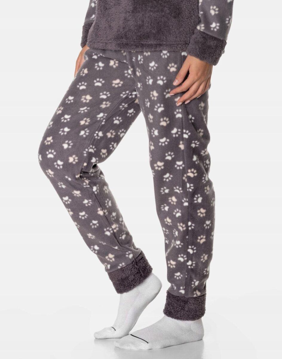 Ciepła, niezwykle przyjemna w dotyku (co ma bardzo duże znaczenie, gdy zakładamy ją na gołe ciało) dwuczęściowa piżamka polarowa damska przeznaczona nie tylko jako nocna garderoba do snu ale także i do codziennego krzątania się po domu. Dwuczęściowa, uszyta z bardzo dobrej jakości puszystej dzianiny polarowej i ciepłego futerka typu Wellsoft na przodzie koszulki, łączącej w sobie skuteczną izolację przed zimnem oraz niską wagę. Jest bardzo ciepła i skutecznie ogrzeje Twoje ciało nawet w najzimniejsze zimowe noce zapewniając komfort termiczny w czasie snu. Włókna polarowe tworzą miliony komórek powietrznych które utrzymują ciepło wewnątrz zapewniając przez to doskonałą ochronę przed chłodem. Dodatkową zaletą piżamy z polaru jest to, że wysycha w bardzo szybkim tempie, nie zatrzymuje w sobie wilgoci lecz pozwalają jej wyparować na zewnątrz a sama tkanina pozostaje sucha. Piżamka jest przez to bardzo ciepła, wygodna i oddychająca (utrzymuje ciepły i suchy mikroklimat skóry) a jednocześnie wyjątkowo lekka. Dzięki tym właściwościom skóra naturalnie oddycha natomiast mikroskopijne torebki powietrza w strukturze materiału utrzymują właściwą ciepłotę ciała. Zapewnia bardzo wysoki współczynnik ochrony termicznej w stosunku do wagi w porównaniu do innych np. frotowych czy welurowych piżam. Dołączona opaska na oczy ułatwia szybkie zasypianie, zapewnia spokojny głęboki sen a poranne promienie słońca nie rozbudzają. Dzięki opasce Twój sen może trwać znacznie dłużej nawet gdy dzień już w pełni.