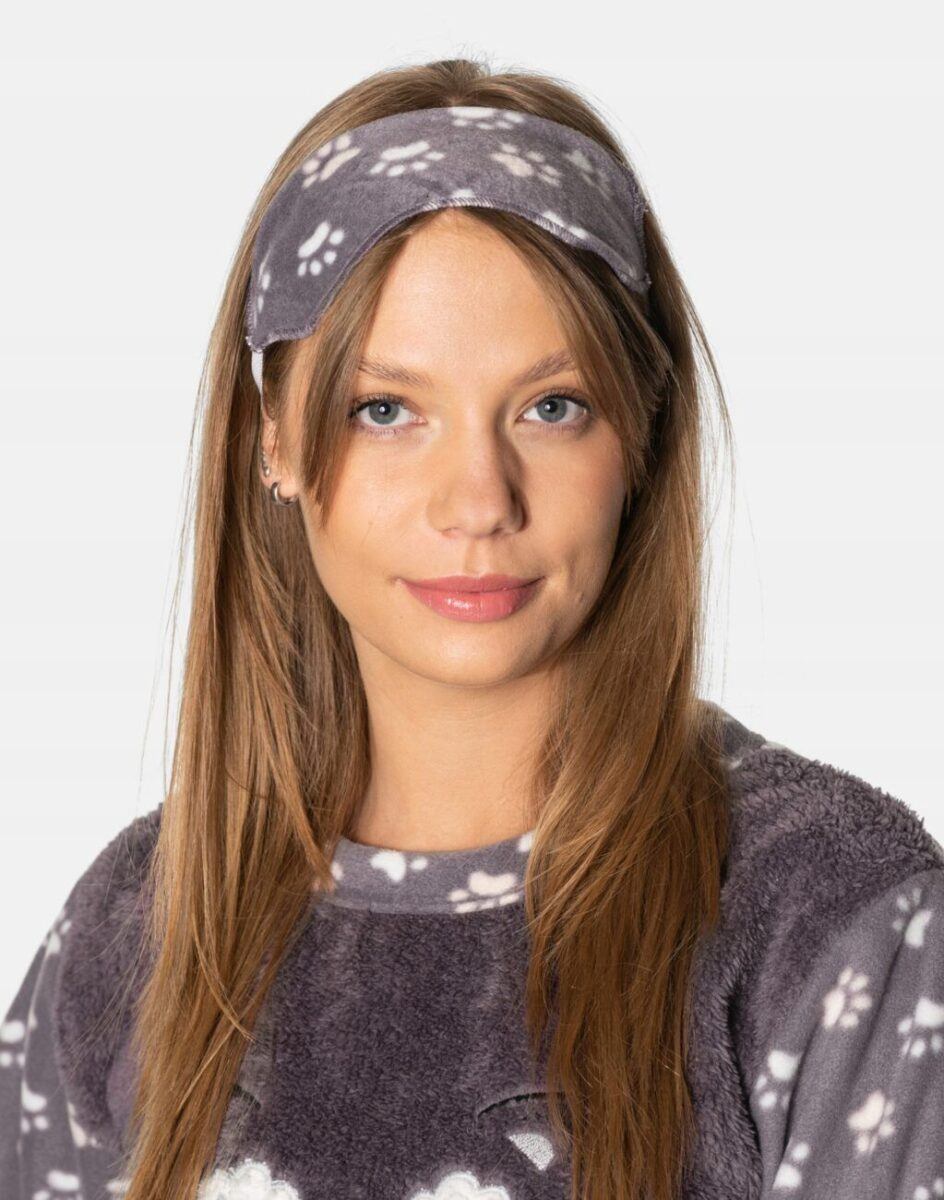 Dwuczęściowa Piżamka Damska z Cieplutkiego Polaru i Puszystego Futerka Wellsoft z Opaską na Oczy