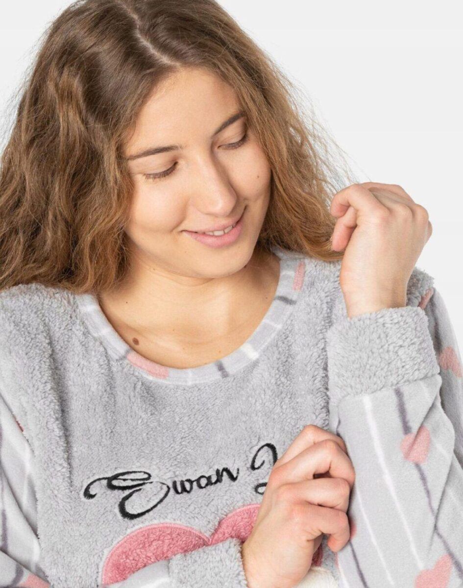 Dwuczęściowa Piżamka Damska z Cieplutkiego Polaru i Futerka Wellsoft + Opaska na Oczy
