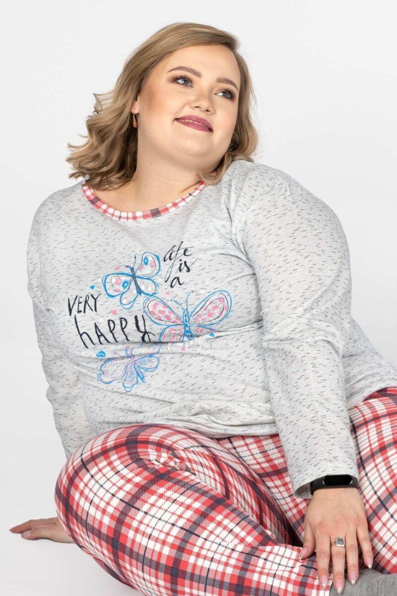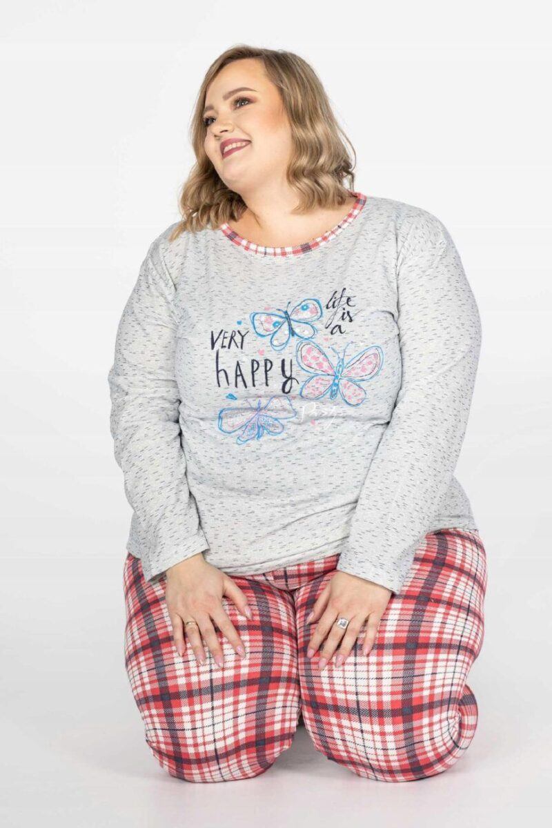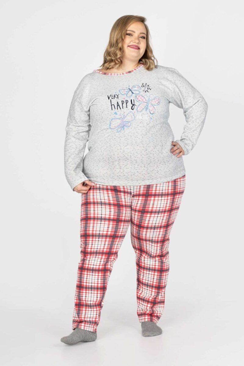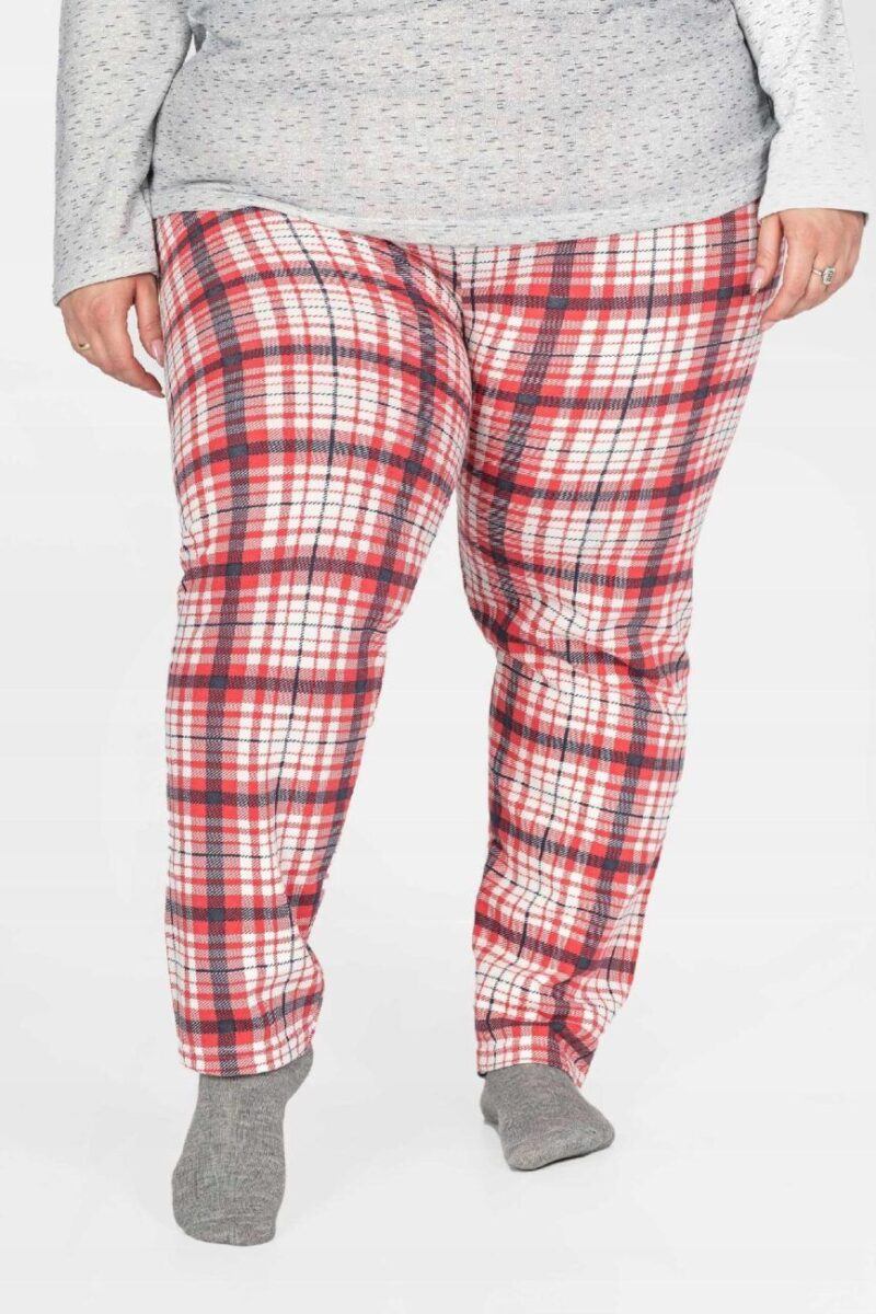 Bawełniana przyjemna w dotyku dwuczęściowa piżama damska, przeznaczona nie tylko jako nocna garderoba do snu, ale także do codziennego krzątania się po domu. Uszyta z bardzo dobrej jakości ciepłego materiału bawełnianego, który przepuszcza powietrze, pozwala skórze oddychać i zapobiega poceniu się ciała, zapewniając komfort w czasie snu. Wewnętrzna strona piżamki posiada wykończenie typu „MESCH” (fabrycznie wykończona jest miłym w dotyku i przyjemnym dla ciała meszkiem tzw. „szczotkowana”) zapewniające bardzo przyjemny kontakt ze skórą oraz komfort cieplny, natomiast zewnętrzna powierzchnia gładka. Jest bardzo ciepła i skutecznie ogrzeje Twoje ciało nawet w najzimniejsze grudniowe noce zapewniając komfort w czasie snu. Nieodzowna w długie chłodne wieczory czy też poranki bo może także posłużyć jako ciepły, domowy dres. Idealna nie tylko na noce, ale także sprawdza się po kąpieli, po pobycie w saunie, rano przy krzątaniu się po mieszkaniu lub jako strój odpowiedni podczas wieczornego wypoczynku przed telewizorem i zrelaksowania się po wielu godzinach spędzonych w ciężkiej pracy.
