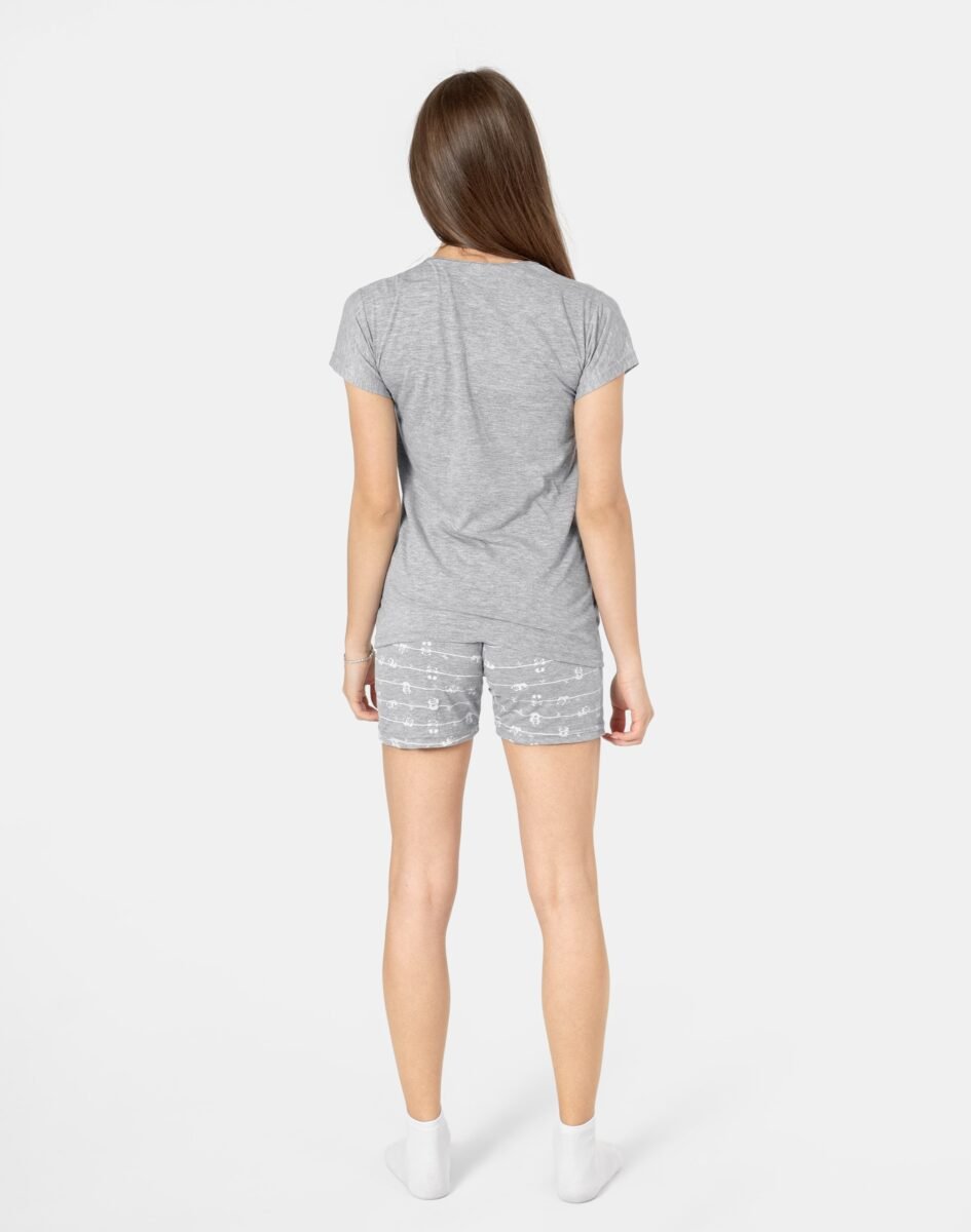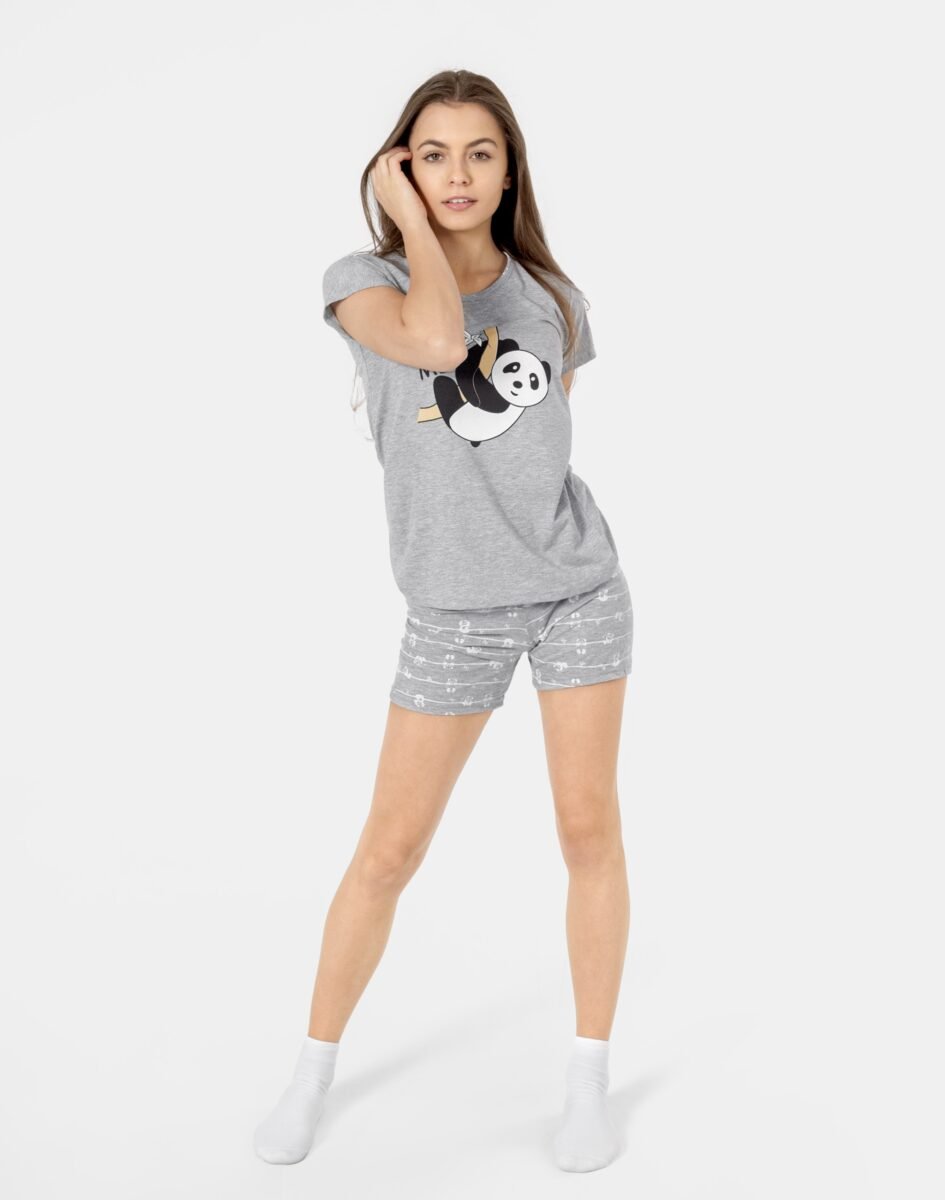 …to strój nocny oraz domowy składający się z dwóch części: krótkich spodenek oraz koszulki z krótkimi rękawami bez dodatków typu guziki czy suwaki by czuć się w pełni swobodnie i komfortowo.