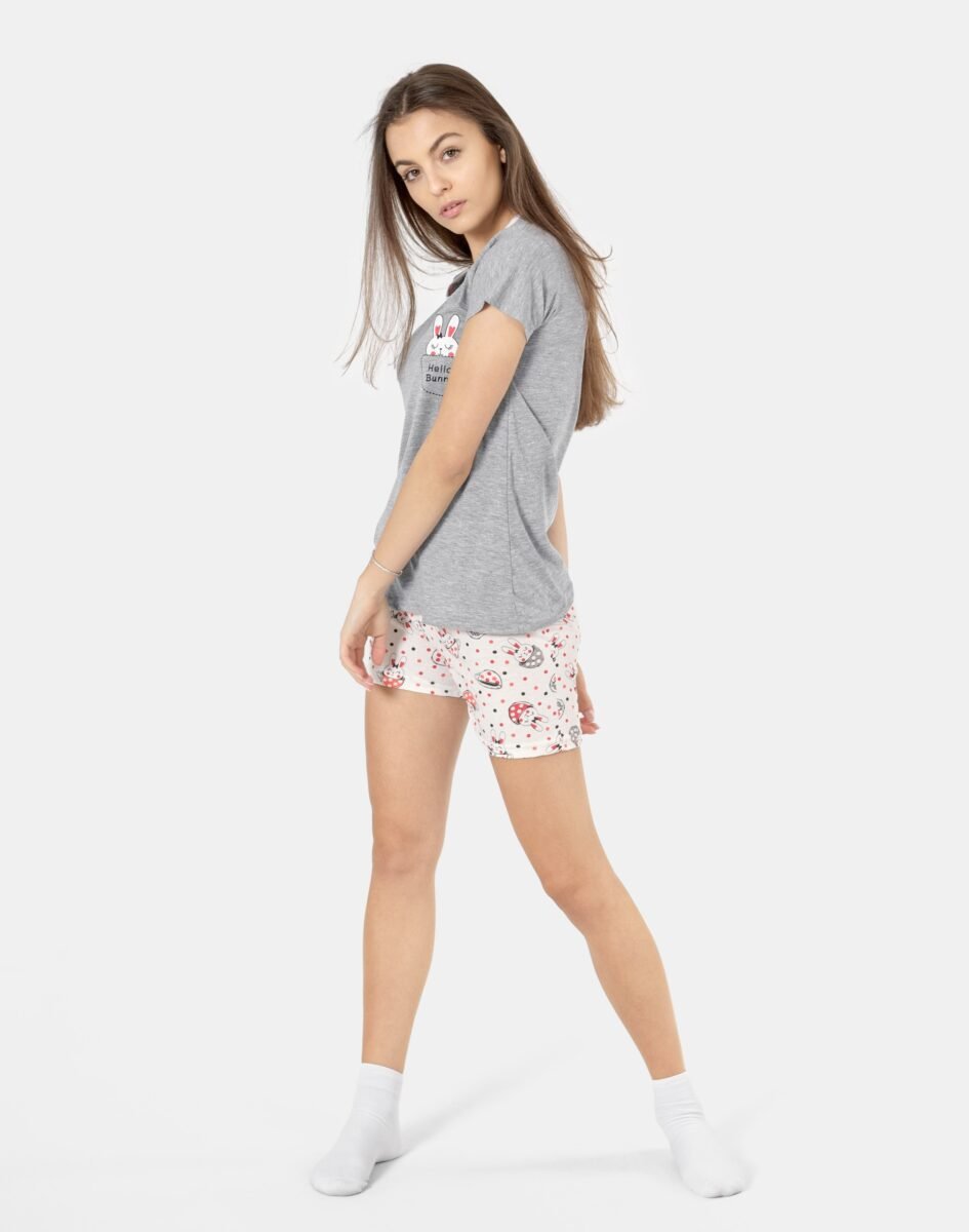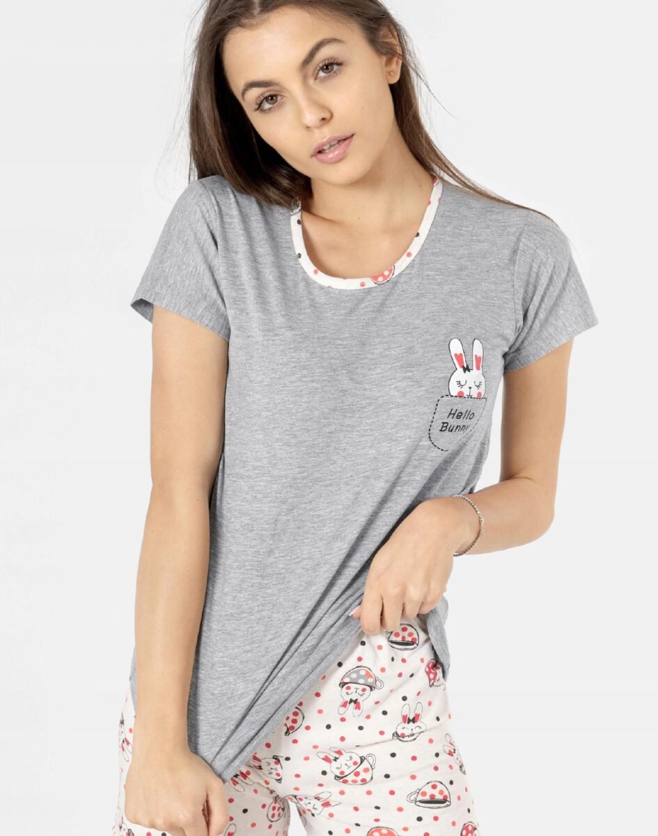 …to strój nocny oraz domowy składający się z dwóch części: krótkich spodenek oraz koszulki z krótkimi rękawami bez dodatków typu guziki czy suwaki by czuć się w pełni swobodnie i komfortowo.