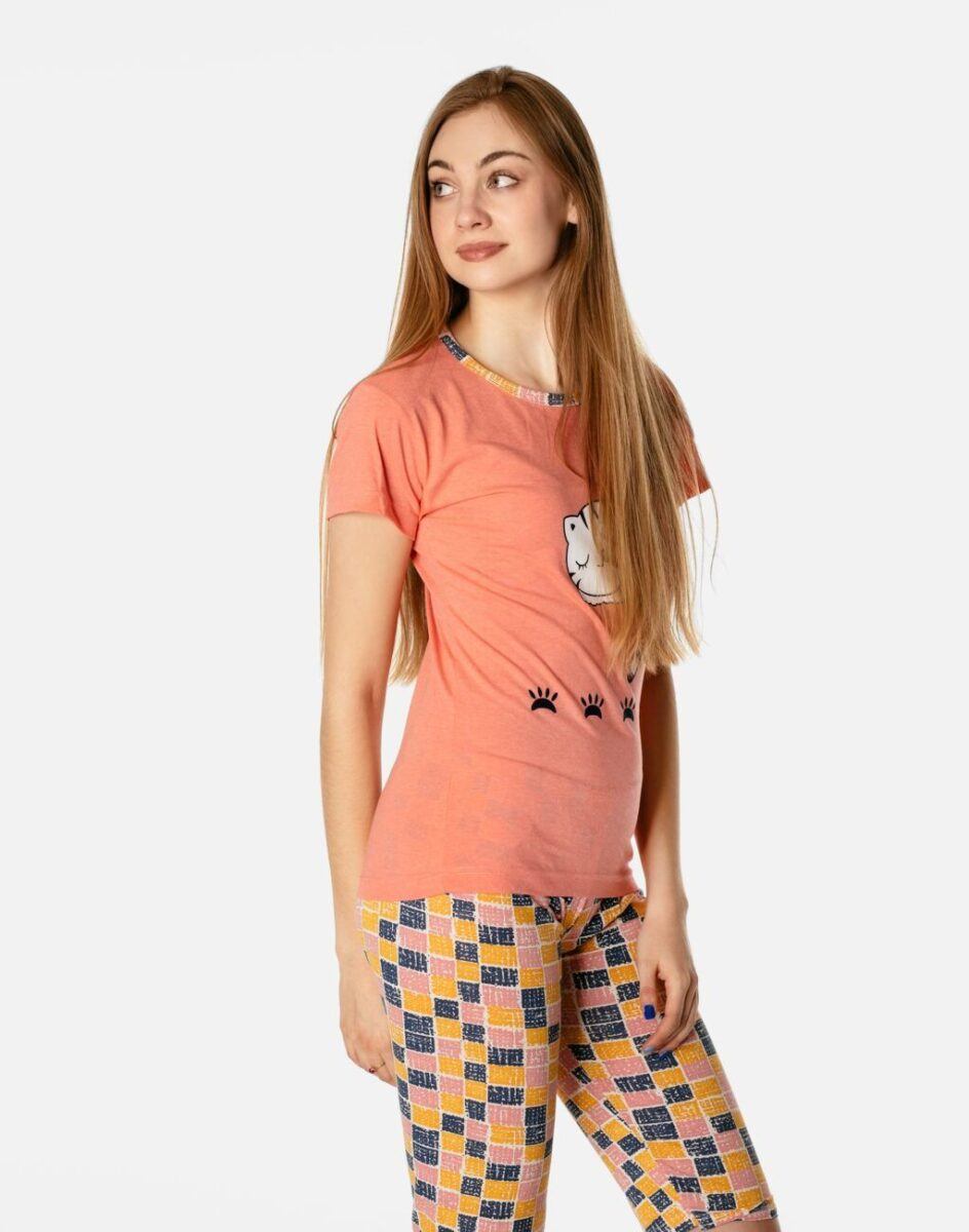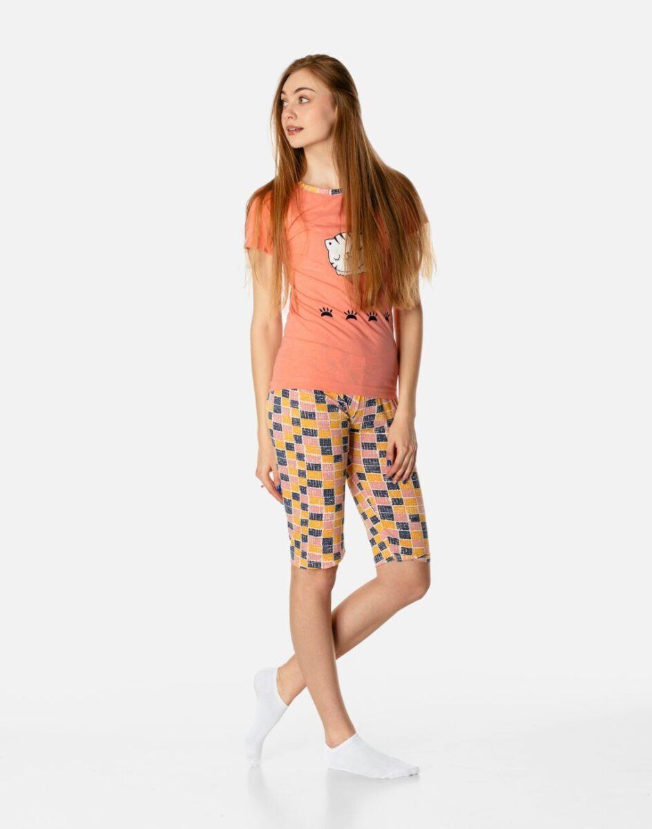 …to strój nocny oraz domowy składający się z dwóch części: krótkich spodenek oraz koszulki z krótkim rękawem bez dodatków typu guziki czy suwaki by czuć się w pełni swobodnie i komfortowo.