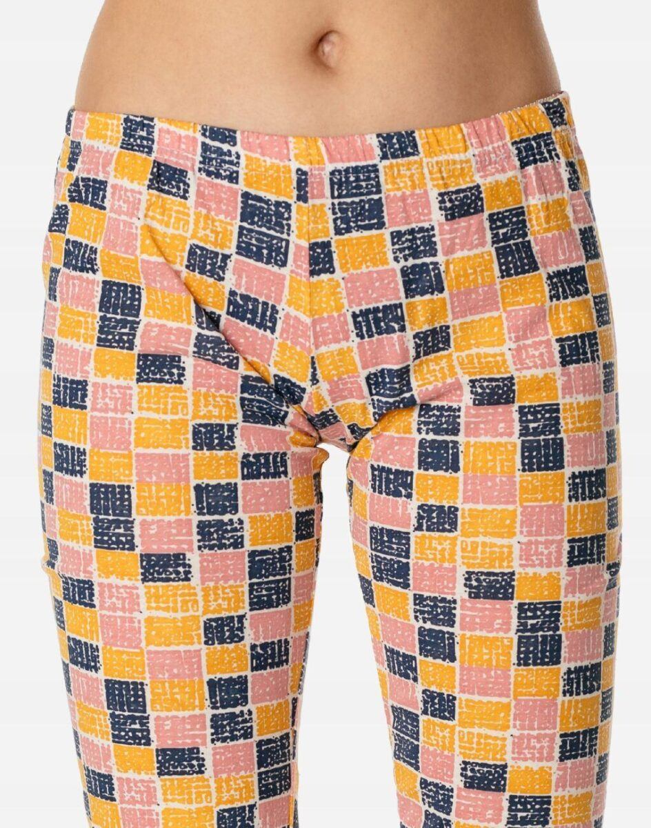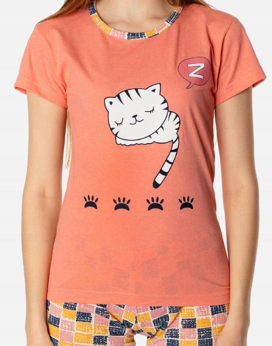 Bawełniana przyjemna w dotyku dwuczęściowa piżama damska przeznaczona nie tylko jako nocna garderoba do snu ale także do codziennego krzątania się po domu. Uszyta z bardzo dobrej jakości cienkiego materiału bawełnianego, który przepuszcza powietrze, pozwala skórze oddychać i zapobiega poceniu się ciała zapewniając komfort w czasie snu. Nieodzowna wieczorem, w nocy czy też porankiem delikatnie otulając nasze ciało. Idealna nie tylko na ciepłe noce ułatwiając szybkie zasypianie, ale także sprawdza się po kąpieli, po pobycie w saunie, rano przy krzątaniu się po mieszkaniu lub jako strój odpowiedni podczas wieczornego wypoczynku przed telewizorem i zrelaksowania się po wielu godzinach spędzonych w ciężkiej pracy.