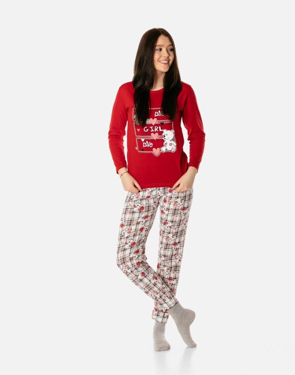 Bawełniana przyjemna w dotyku dwuczęściowa piżama damska przeznaczona nie tylko jako nocna garderoba do snu ale także do codziennego krzątania się po domu. Uszyta z bardzo dobrej jakości cienkiego materiału bawełnianego, który przepuszcza powietrze, pozwala skórze oddychać i zapobiega poceniu się ciała zapewniając komfort w czasie snu. Nieodzowna wieczorem, w nocy czy też porankiem delikatnie otulając nasze ciało. Idealna nie tylko na ciepłe noce ułatwiając szybkie zasypianie, ale także sprawdza się po kąpieli, po pobycie w saunie, rano przy krzątaniu się po mieszkaniu lub jako strój odpowiedni podczas wieczornego wypoczynku przed telewizorem i zrelaksowania się po wielu godzinach spędzonych w ciężkiej pracy.