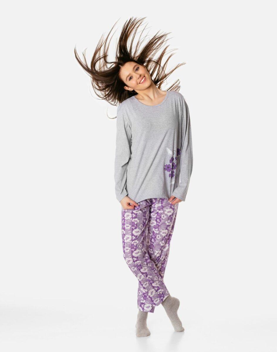 …to strój nocny oraz domowy składający się z dwóch części: długich prostych spodni oraz koszulki z długim rękawem bez dodatków typu guziki czy suwaki by czuć się w pełni swobodnie i komfortowo.