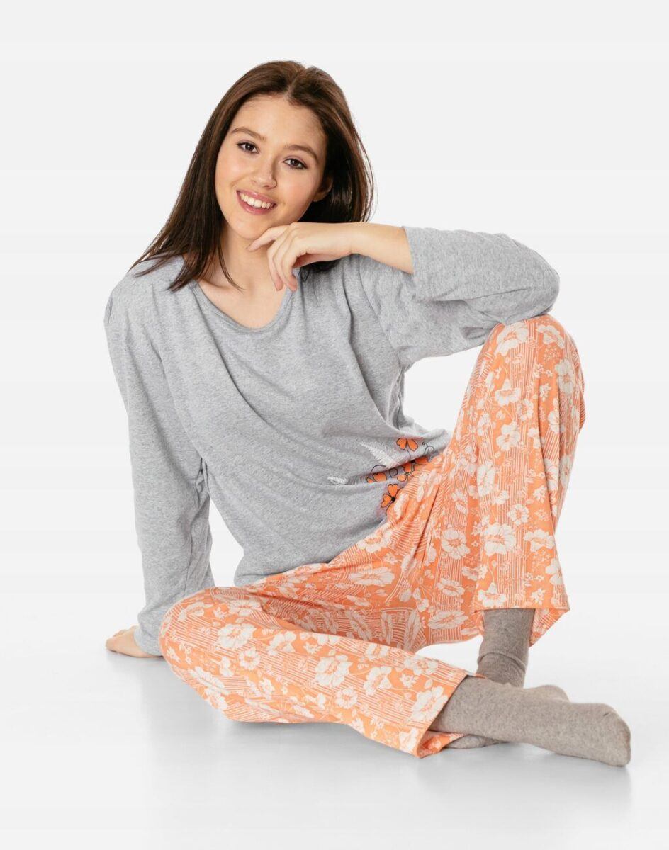 …to strój nocny oraz domowy składający się z dwóch części: długich prostych spodni oraz koszulki z długim rękawem bez dodatków typu guziki czy suwaki by czuć się w pełni swobodnie i komfortowo.