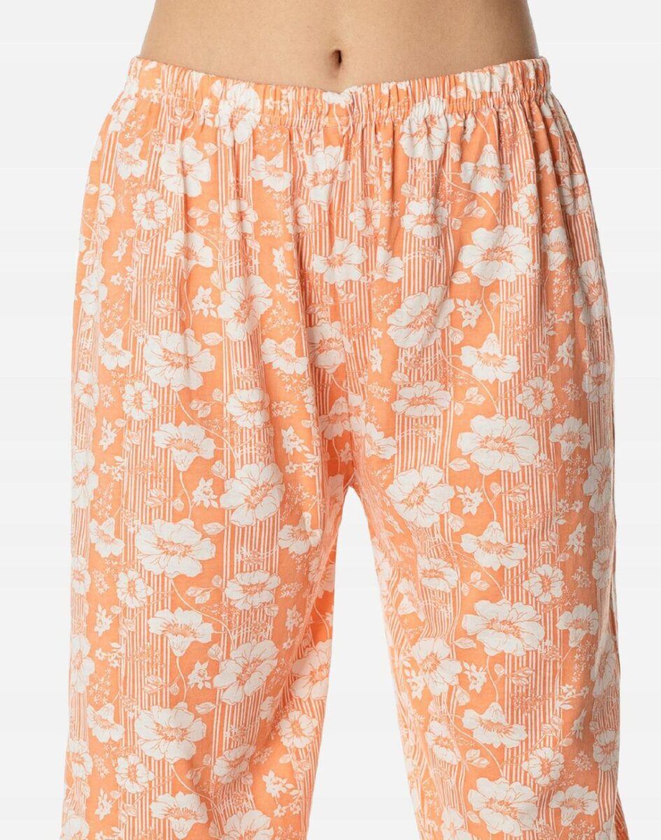 Bawełniana przyjemna w dotyku dwuczęściowa piżama damska przeznaczona nie tylko jako nocna garderoba do snu ale także do codziennego krzątania się po domu. Uszyta z bardzo dobrej jakości cienkiego materiału bawełnianego, który przepuszcza powietrze, pozwala skórze oddychać i zapobiega poceniu się ciała zapewniając komfort w czasie snu. Nieodzowna wieczorem, w nocy czy też porankiem delikatnie otulając nasze ciało. Idealna nie tylko na ciepłe noce ułatwiając szybkie zasypianie, ale także sprawdza się po kąpieli, po pobycie w saunie, rano przy krzątaniu się po mieszkaniu lub jako strój odpowiedni podczas wieczornego wypoczynku przed telewizorem i zrelaksowania się po wielu godzinach spędzonych w ciężkiej pracy.