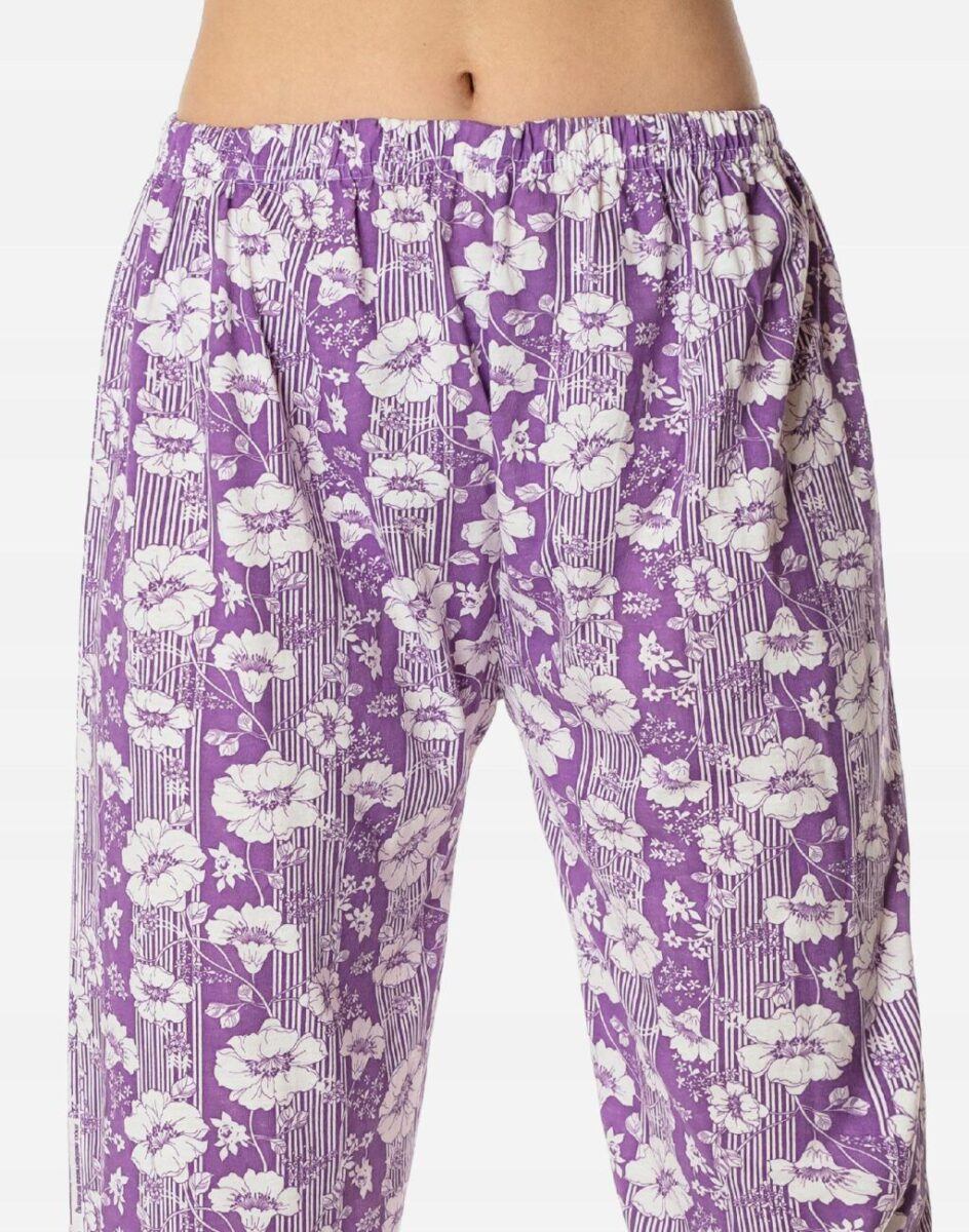 Bawełniana przyjemna w dotyku dwuczęściowa piżama damska przeznaczona nie tylko jako nocna garderoba do snu ale także do codziennego krzątania się po domu. Uszyta z bardzo dobrej jakości cienkiego materiału bawełnianego, który przepuszcza powietrze, pozwala skórze oddychać i zapobiega poceniu się ciała zapewniając komfort w czasie snu. Nieodzowna wieczorem, w nocy czy też porankiem delikatnie otulając nasze ciało. Idealna nie tylko na ciepłe noce ułatwiając szybkie zasypianie, ale także sprawdza się po kąpieli, po pobycie w saunie, rano przy krzątaniu się po mieszkaniu lub jako strój odpowiedni podczas wieczornego wypoczynku przed telewizorem i zrelaksowania się po wielu godzinach spędzonych w ciężkiej pracy.