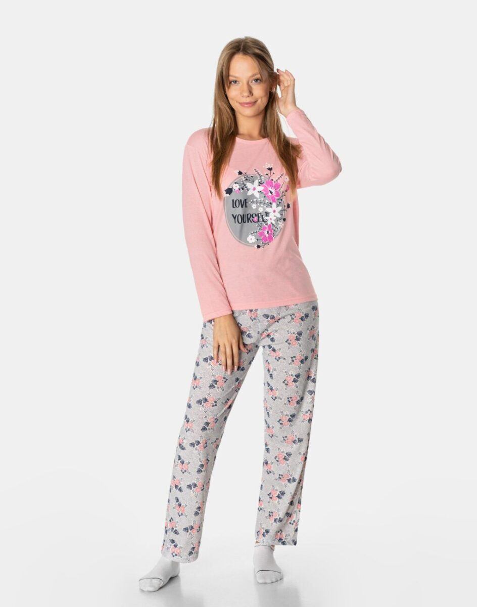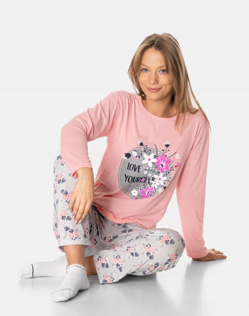 …to strój nocny oraz domowy składający się z dwóch części: długich spodni oraz koszulki z długim rękawem bez dodatków typu guziki czy suwaki, by czuć się w pełni swobodnie i komfortowo.