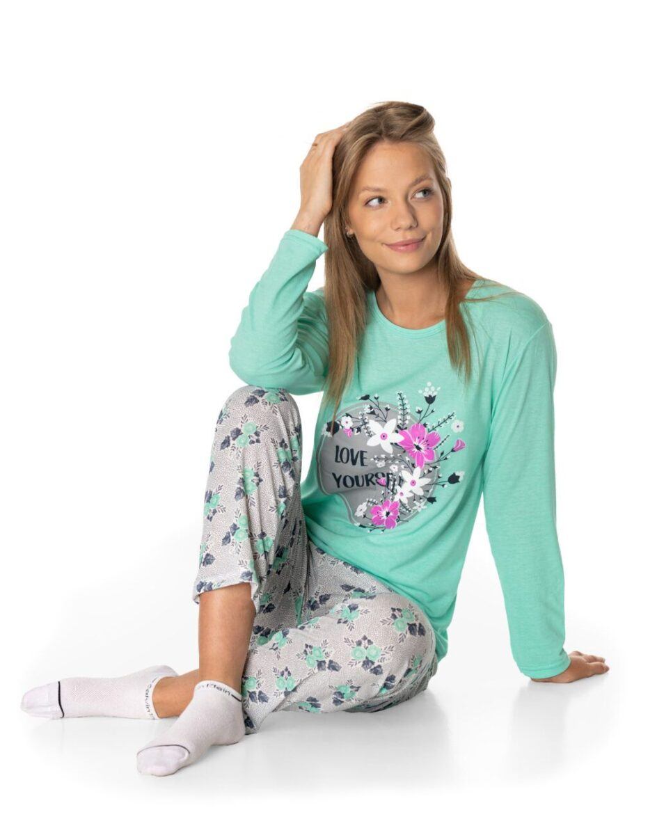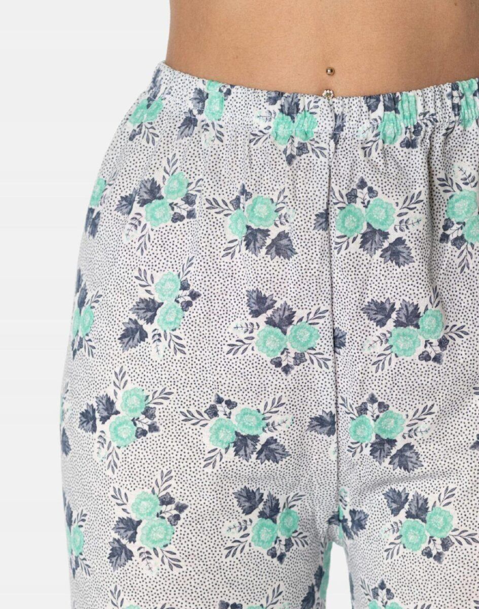Bawełniana przyjemna w dotyku dwuczęściowa piżama damska w której nie tylko wygodnie i przyjemnie się śpi, ale także z chęcią spędza się czas w domu. Uszyta z bardzo dobrej jakości cienkiego materiału bawełnianego który zapewnia odpowiednią cyrkulację powietrza, pozwala skórze oddychać i zapobiega poceniu się ciała zapewniając długi i komfortowy sen. Luźny fason piżamki nie obciera skóry i pozwala na pełną swobodę ruchów. Nieodzowna wieczorem, w nocy czy też porankiem delikatnie otulając nasze ciało. Idealna nie tylko wieczorem ułatwiając szybkie zasypianie, ale także sprawdza się po kąpieli, po pobycie w saunie, rano przy krzątaniu się po mieszkaniu lub jako strój odpowiedni podczas wieczornego wypoczynku przed telewizorem i zrelaksowania się po wielu godzinach spędzonych w ciężkiej pracy.