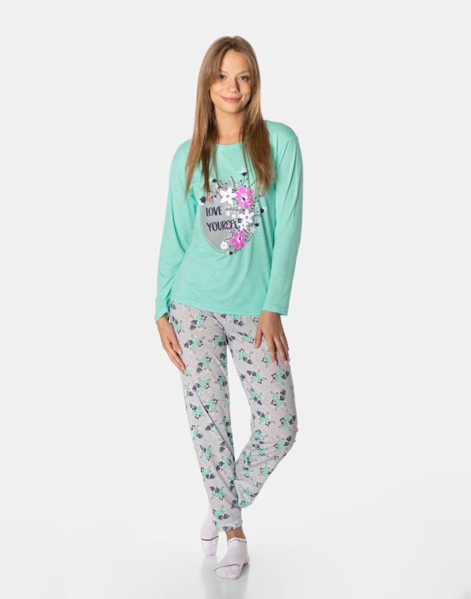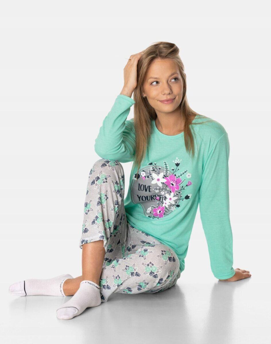 …to strój nocny oraz domowy składający się z dwóch części: długich spodni oraz koszulki z długim rękawem bez dodatków typu guziki czy suwaki, by czuć się w pełni swobodnie i komfortowo.