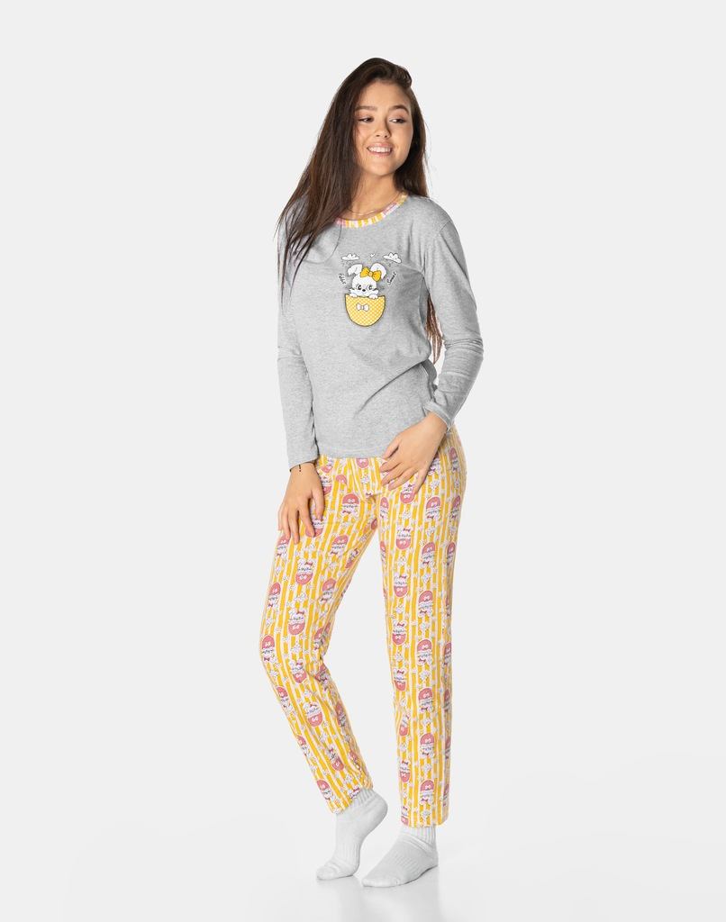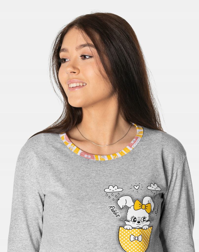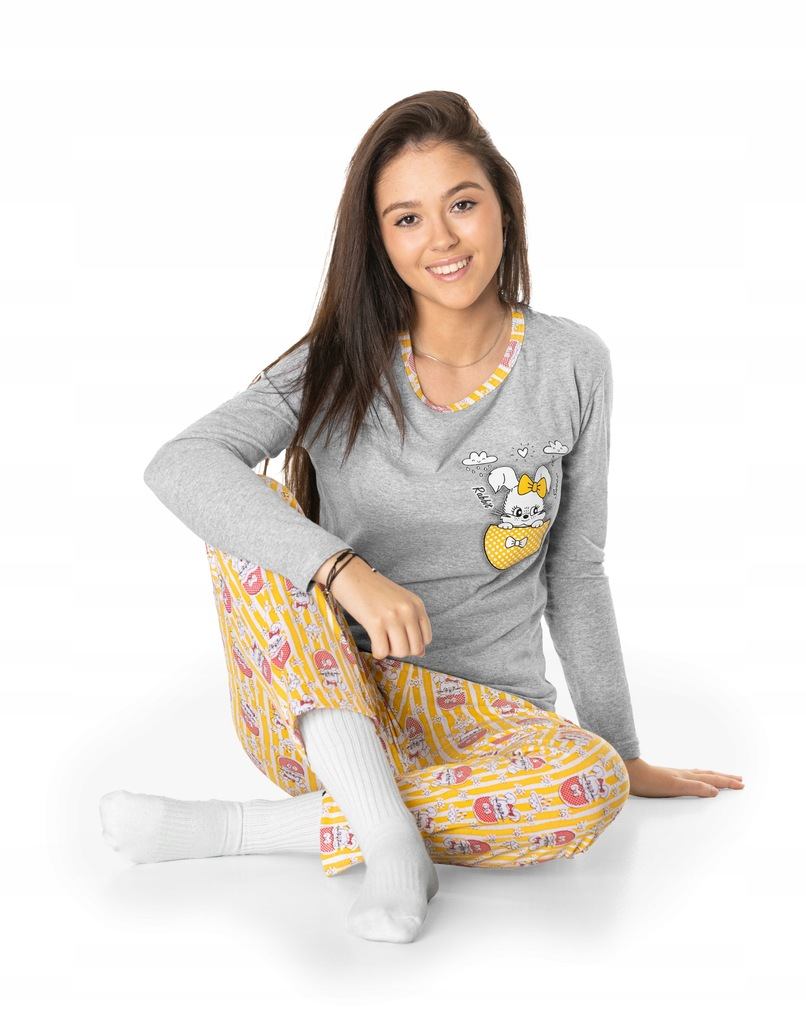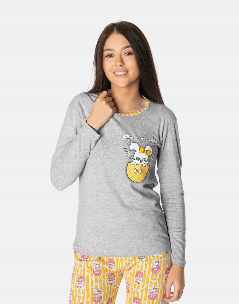 Piżama Damska z Bawełny Komplet Koszulka Długi Rękaw + Spodnie 10526-04 XL