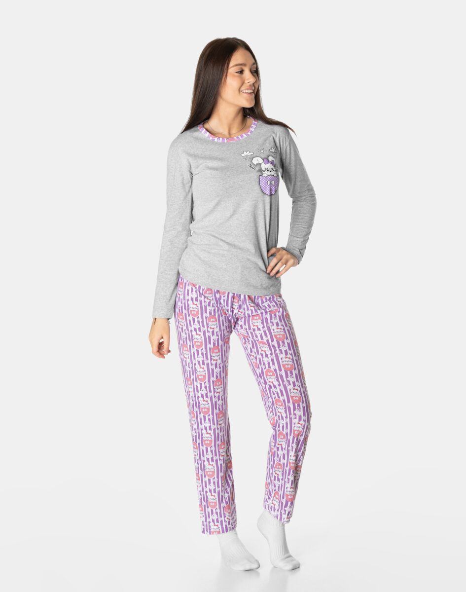 …to strój nocny oraz domowy składający się z dwóch części: długich spodni oraz koszulki z długim rękawem bez dodatków typu guziki czy suwaki, by czuć się w pełni swobodnie i komfortowo.