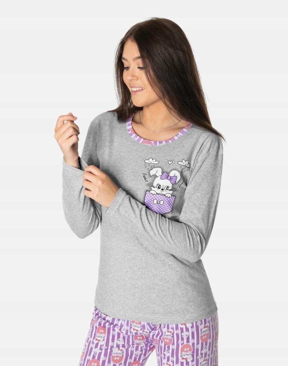 …to strój nocny oraz domowy składający się z dwóch części: długich spodni oraz koszulki z długim rękawem bez dodatków typu guziki czy suwaki, by czuć się w pełni swobodnie i komfortowo.
