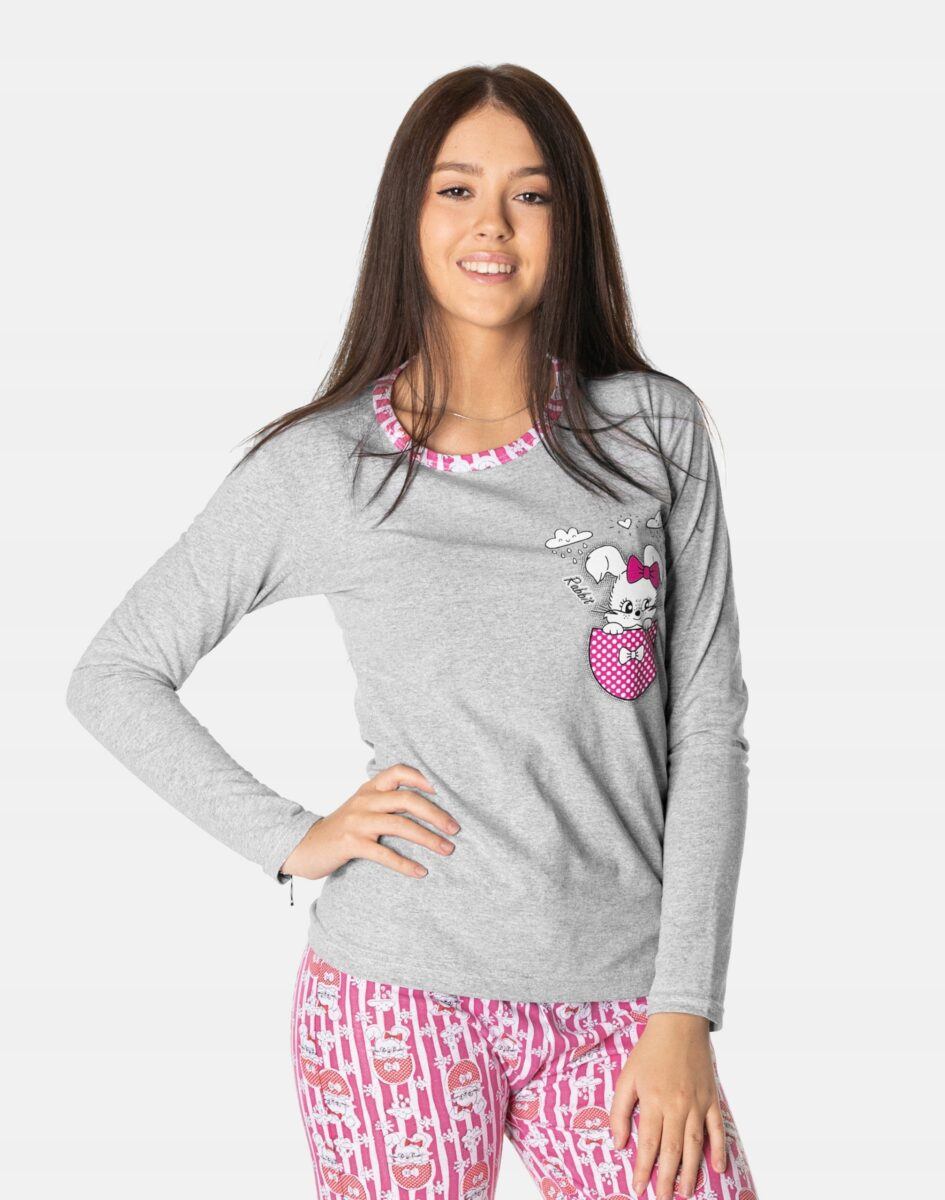 …to strój nocny oraz domowy składający się z dwóch części: długich spodni oraz koszulki z długim rękawem bez dodatków typu guziki czy suwaki, by czuć się w pełni swobodnie i komfortowo.