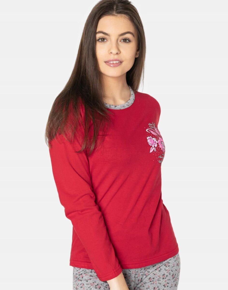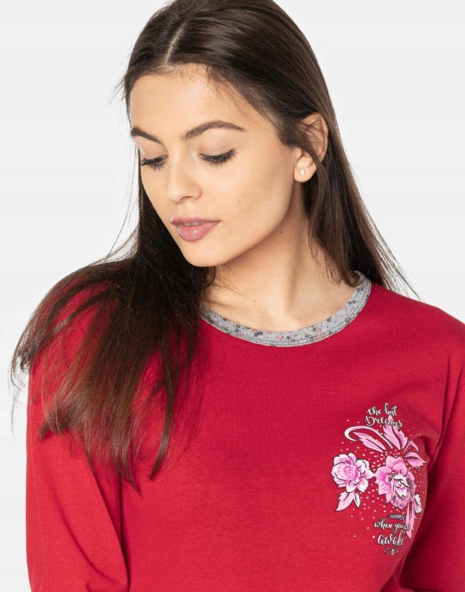 …to strój nocny oraz domowy składający się z dwóch części: długich spodni oraz koszulki z długim rękawem bez dodatków typu guziki czy suwaki, by czuć się w pełni swobodnie i komfortowo.