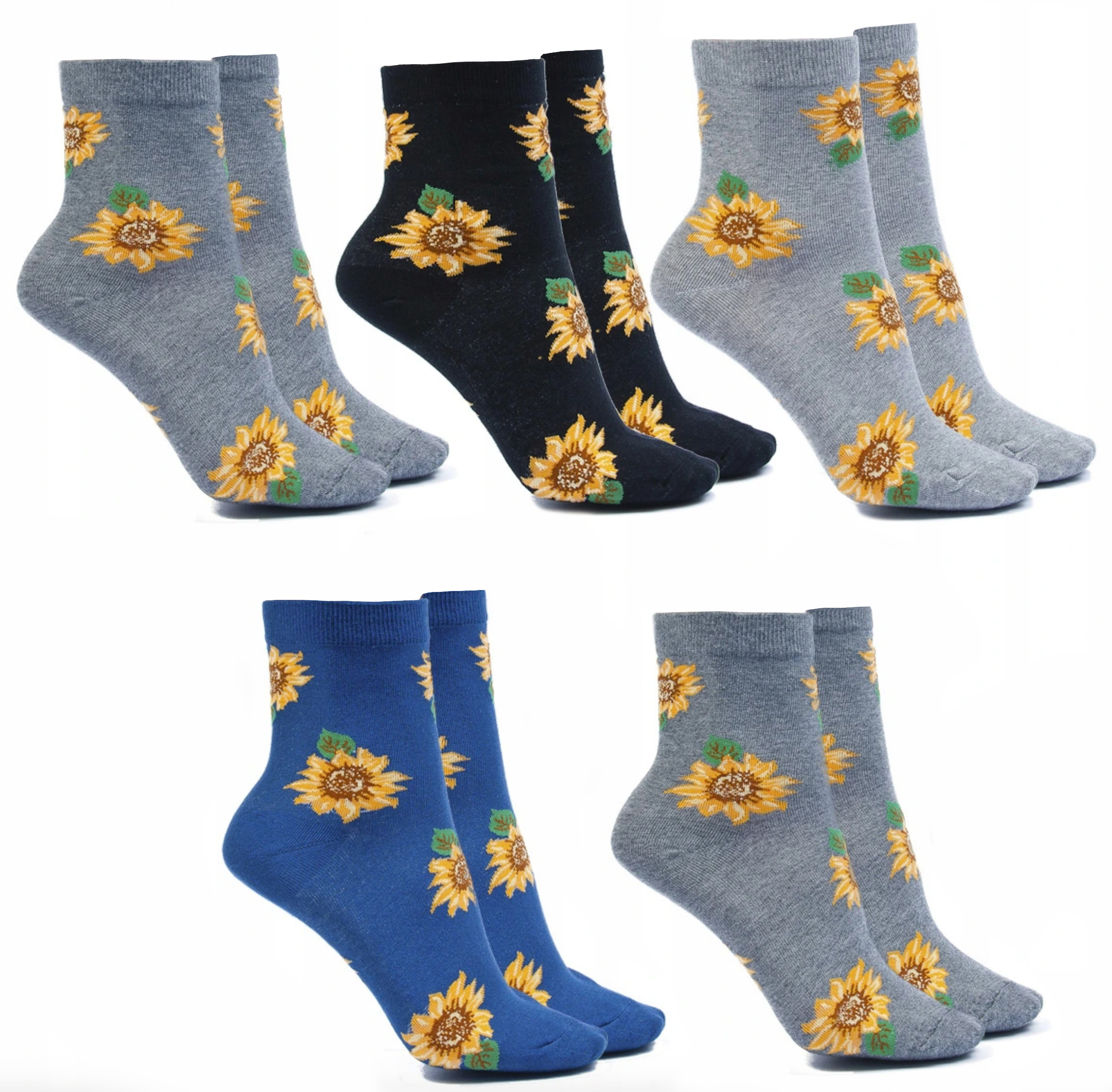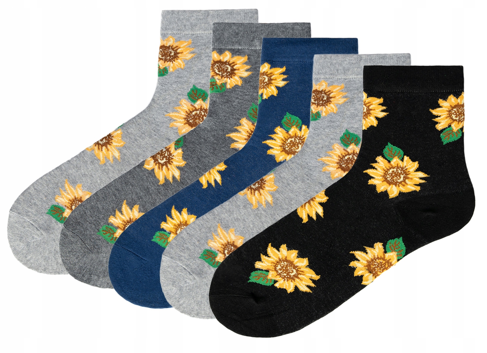 Kolorowe skarpetki damskie bawełniane "Sunflowers" – 5 par w opakowaniu !