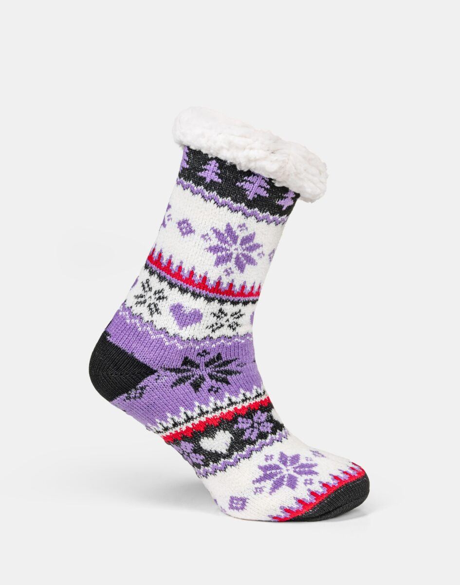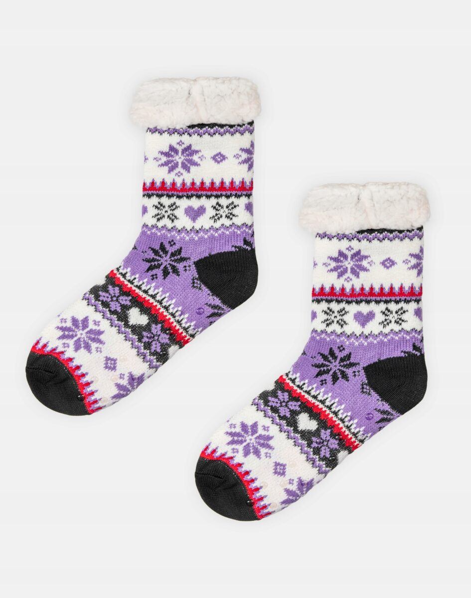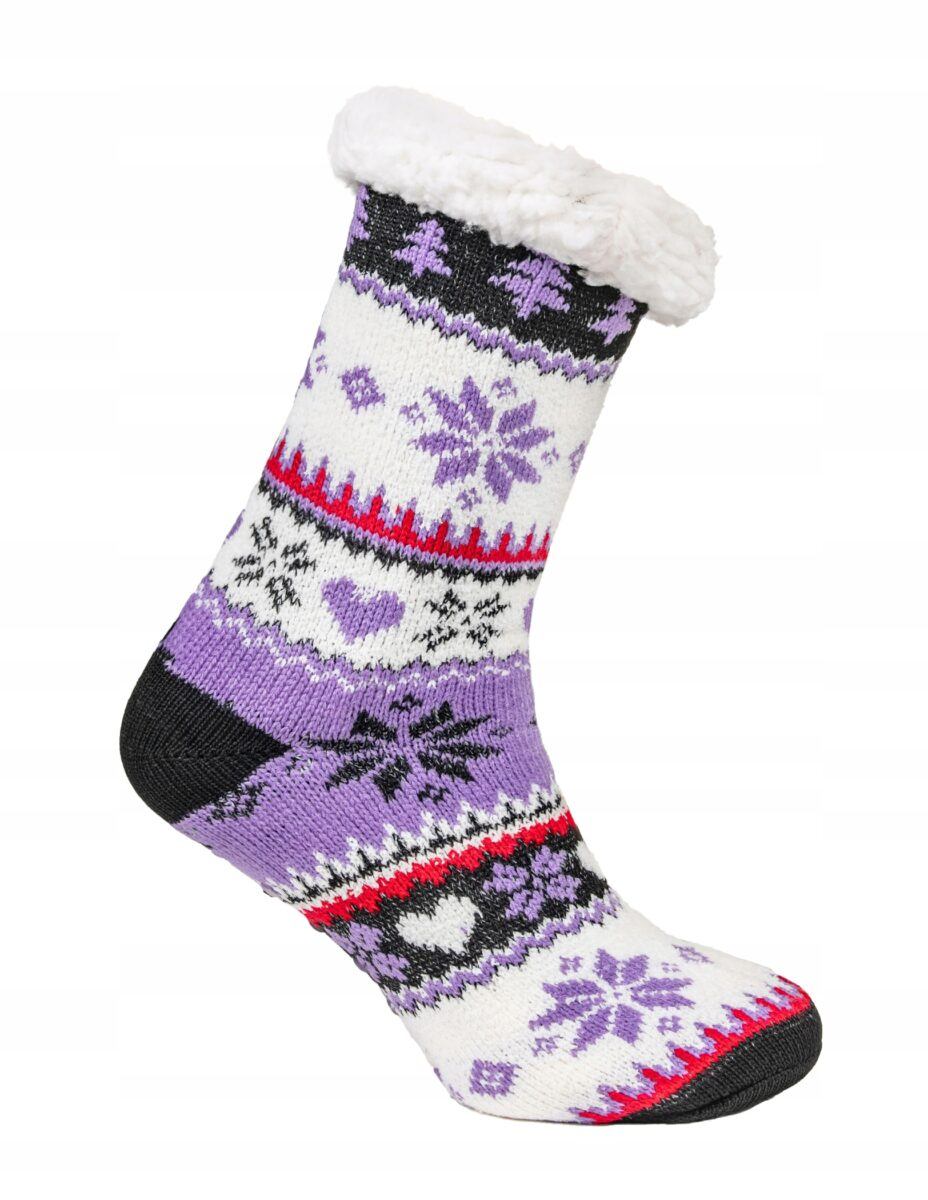Ciepłe Skarpetki Ocieplane z Futerka Damskie Wzór Norweski 9933-12 35-38