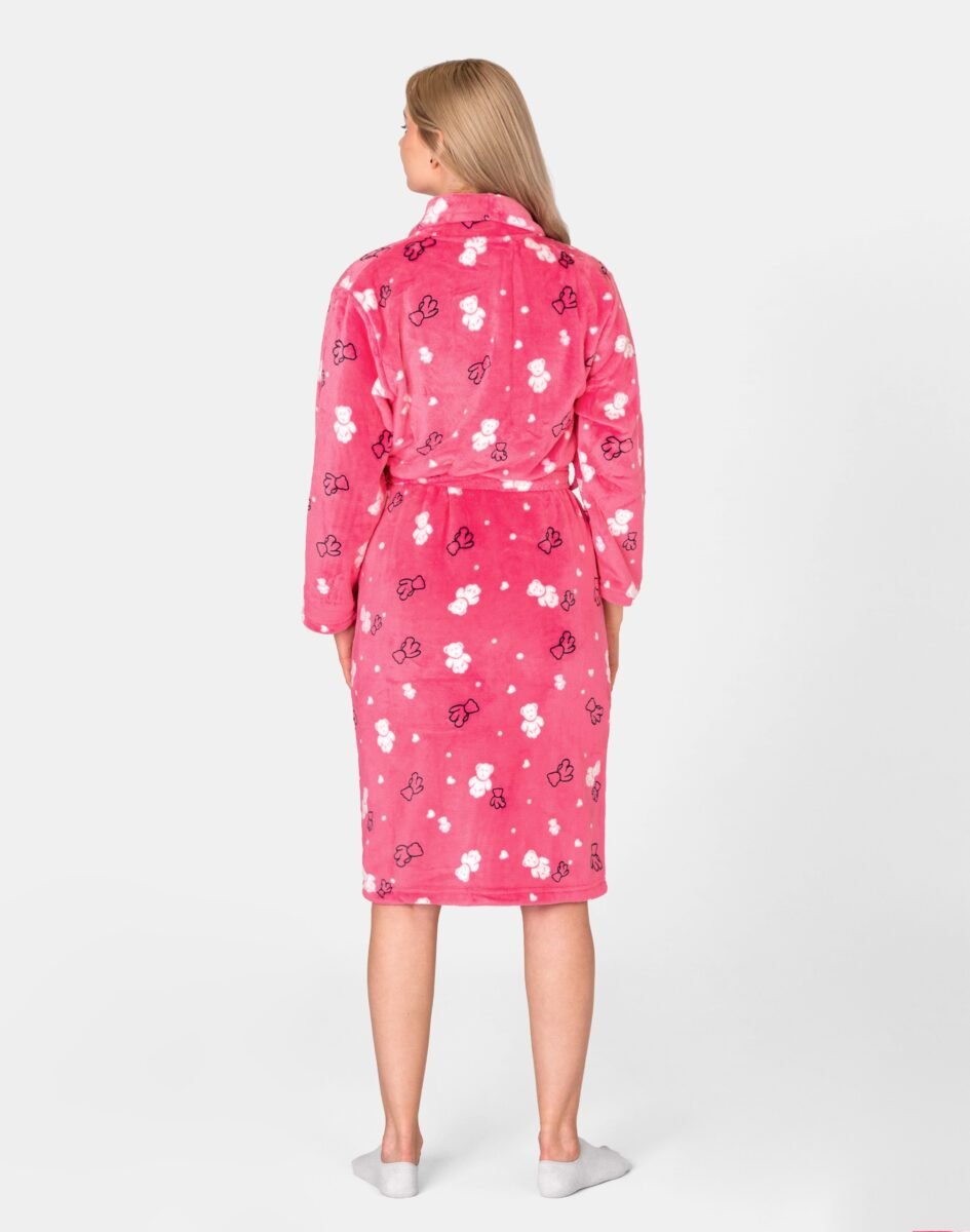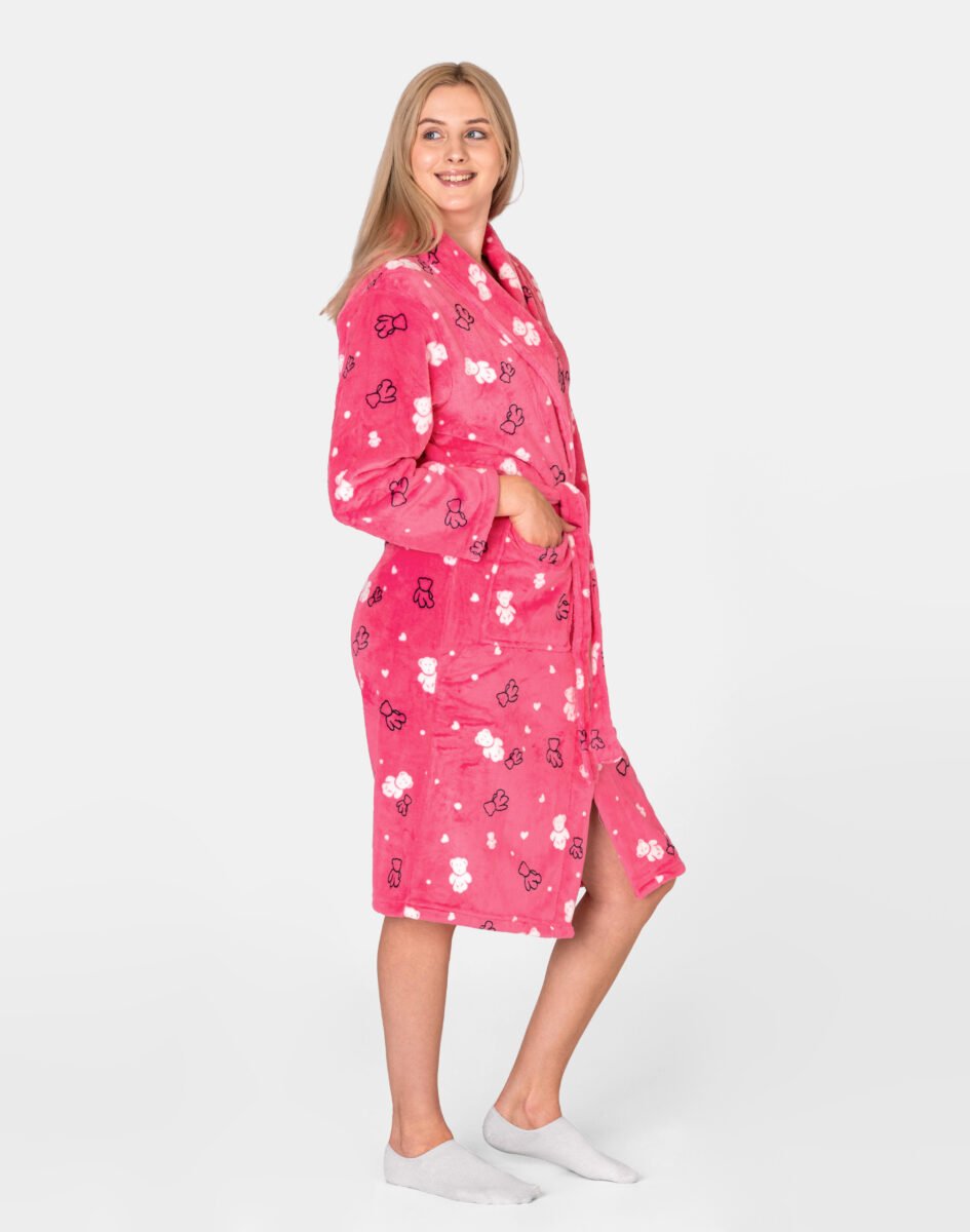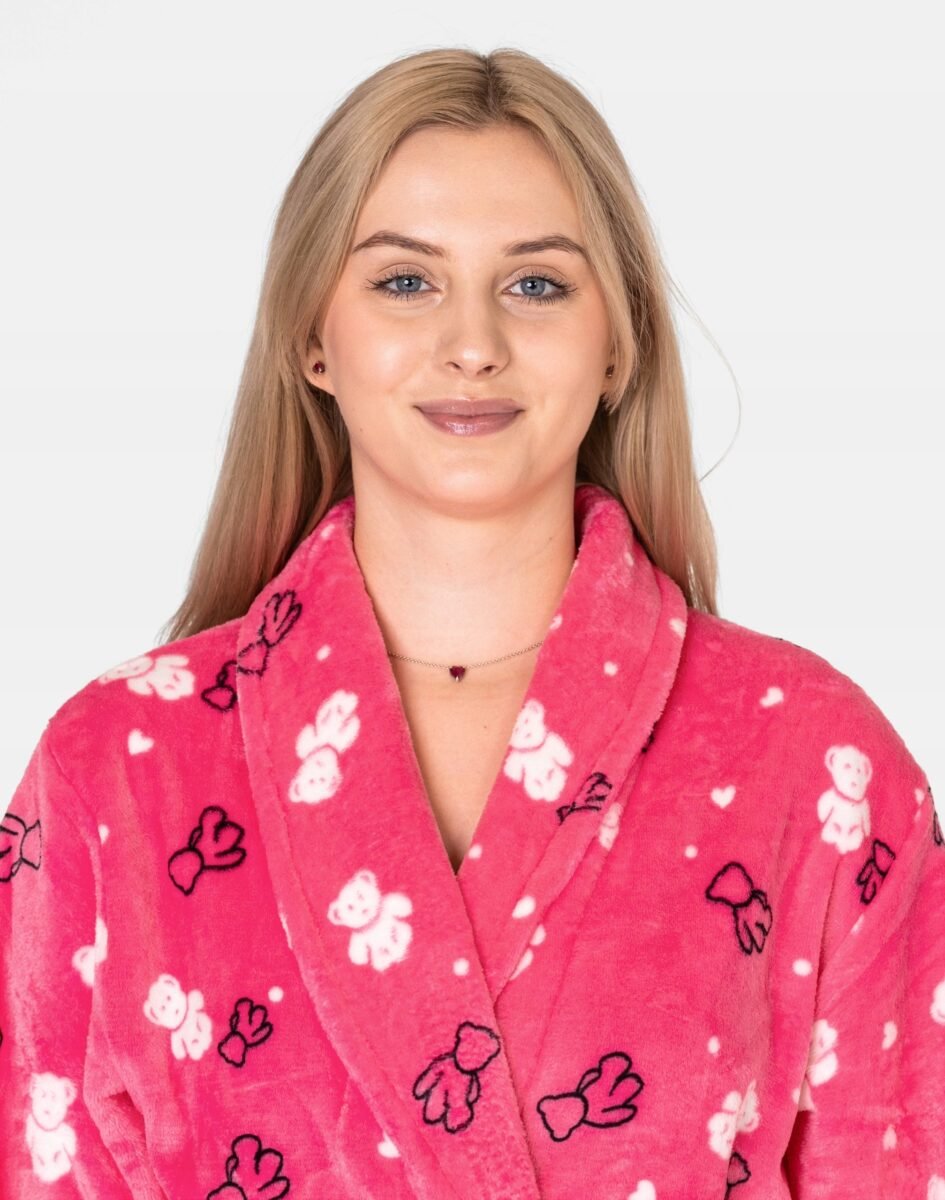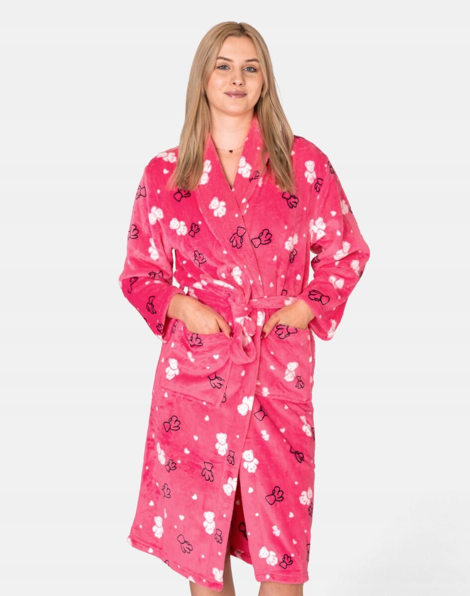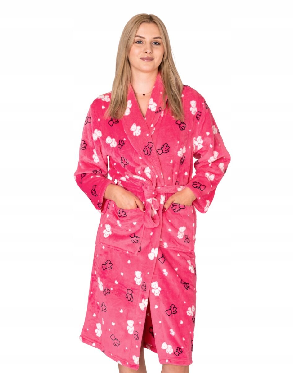 Ciepły szlafrok z pluszowego futerka "Wellsoft", to idealne okrycie wierzchnie na chłodne wieczory czy też poranki zwłaszcza po kąpieli gdy trzeba wyjść spod rozgrzewającego strumienia wody, jak również na relaks w każdej innej postaci. Na przodzie dwie naszywane proste kieszenie w których można schować niezbędne małe akcesoria, takie jak chusteczki higieniczne albo telefon jak również ogrzać dłonie. Dołączone paski (jeden wewnątrz, a drugi na zewnątrz szlafroka) umożliwiają nie tylko przewiązanie się w pasie co zgrabnie podkreśli figurę, ale również jeszcze ściślejsze opatulenie przyjemnym pluszowym materiałem. Pluszowy szlafrok wspaniale otula ciało, przepuszcza powietrze pozwalając skórze oddychać i daje poczucie pełnego komfortu. Miękka, ciepła tkanina rozpieszcza skórę, a wygodny krój pozwala szczelnie otulić się po kąpieli. Idealnie sprawdza się również po pobycie w saunie, jacuzzi, rano przy krzątaniu się po mieszkaniu lub jako strój odpowiedni podczas wieczornego wypoczynku przed telewizorem i zrelaksowania po wielu godzinach spędzonych w pracy. Szlafrok o tak uroczym wyglądzie będzie będzie idealnym prezentem dla każdej kobiety!