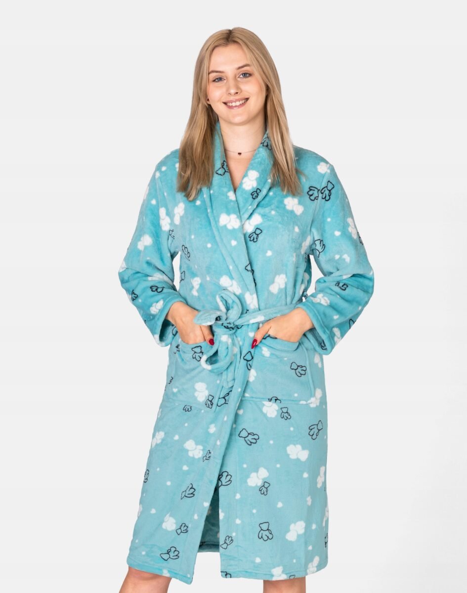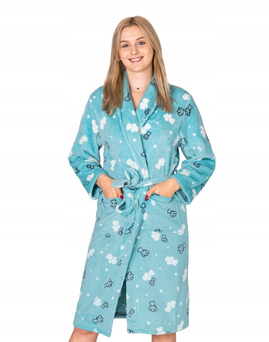 Ciepły szlafrok z pluszowego futerka "Wellsoft", to idealne okrycie wierzchnie na chłodne wieczory czy też poranki zwłaszcza po kąpieli gdy trzeba wyjść spod rozgrzewającego strumienia wody, jak również na relaks w każdej innej postaci. Na przodzie dwie naszywane proste kieszenie w których można schować niezbędne małe akcesoria, takie jak chusteczki higieniczne albo telefon jak również ogrzać dłonie. Dołączone paski (jeden wewnątrz, a drugi na zewnątrz szlafroka) umożliwiają nie tylko przewiązanie się w pasie co zgrabnie podkreśli figurę, ale również jeszcze ściślejsze opatulenie przyjemnym pluszowym materiałem. Pluszowy szlafrok wspaniale otula ciało, przepuszcza powietrze pozwalając skórze oddychać i daje poczucie pełnego komfortu. Miękka, ciepła tkanina rozpieszcza skórę, a wygodny krój pozwala szczelnie otulić się po kąpieli. Idealnie sprawdza się również po pobycie w saunie, jacuzzi, rano przy krzątaniu się po mieszkaniu lub jako strój odpowiedni podczas wieczornego wypoczynku przed telewizorem i zrelaksowania po wielu godzinach spędzonych w pracy. Szlafrok o tak uroczym wyglądzie będzie będzie idealnym prezentem dla każdej kobiety!
