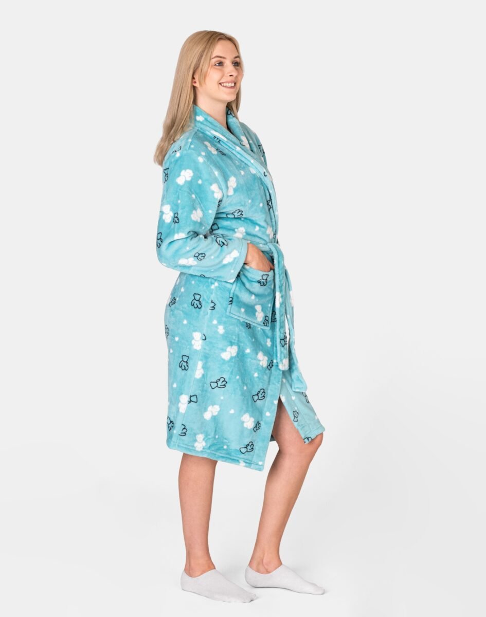 Uroczy, ciepły i miły w dotyku, bo to ma bardzo duże znaczenie gdy zakładamy go na gołe ciało, pluszowy szlafrok damski, który zdobył zaufanie wielu naszych zadowolonych klientek! Uszyty z bardzo dobrej jakości puszystej tkaniny futerkowej typu "Wellsoft", łączącej w sobie skuteczną izolację przed zimnem oraz niską wagę. Pluszowe futerko jest bardzo ciepłe i skutecznie utrzymuje ciepło wewnątrz zapewniając przez to doskonałą ochronę przed chłodem. Szlafrok jest przez to bardzo ciepły, wygodny, oddychający (utrzymuje ciepły i suchy mikroklimat skóry) a jednocześnie wyjątkowo lekki. Dzięki tym właściwościom skóra naturalnie oddycha natomiast mikroskopijne torebki powietrza w strukturze materiału utrzymują właściwą ciepłotę ciała. Zapewnia bardzo wysoki współczynnik ochrony termicznej w stosunku do wagi w porównaniu do frottowych szlafroków.