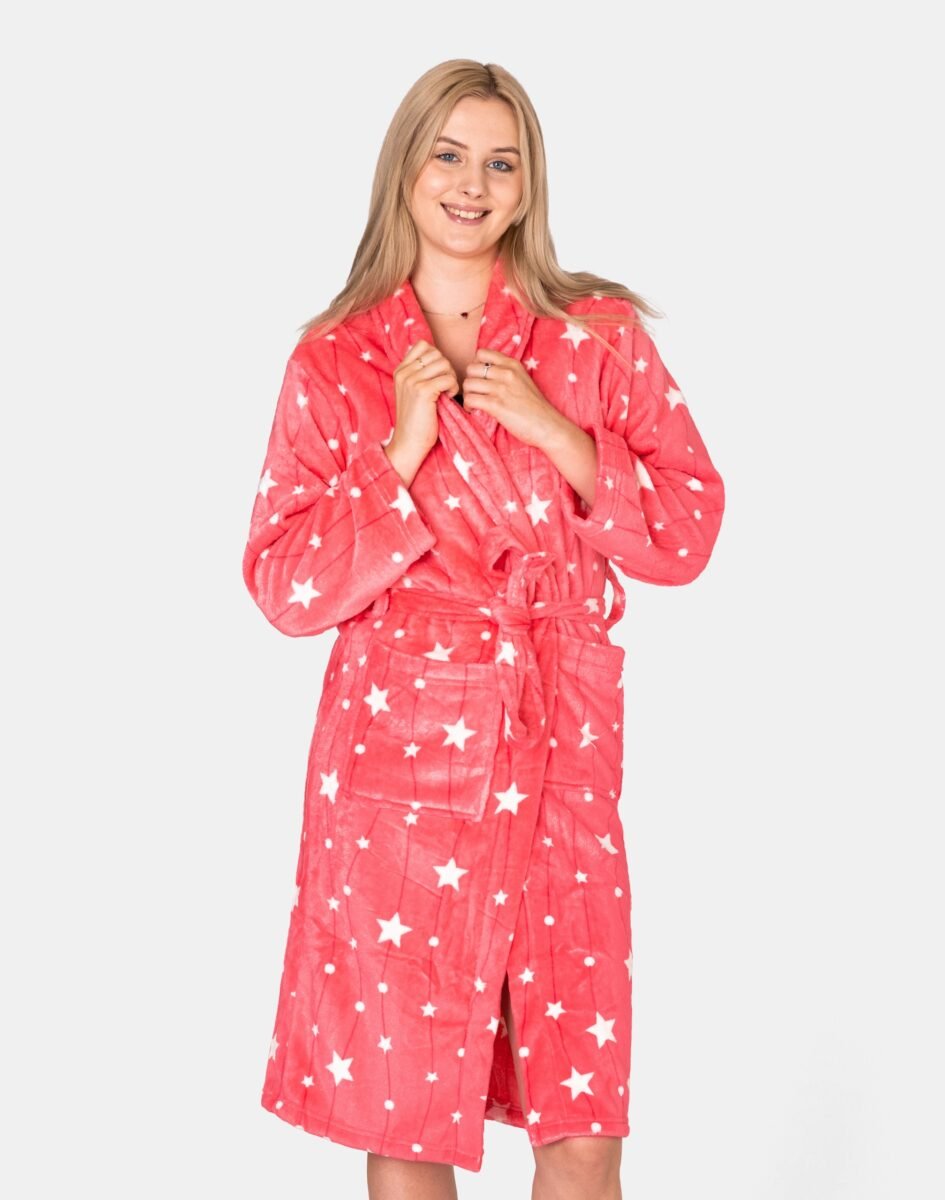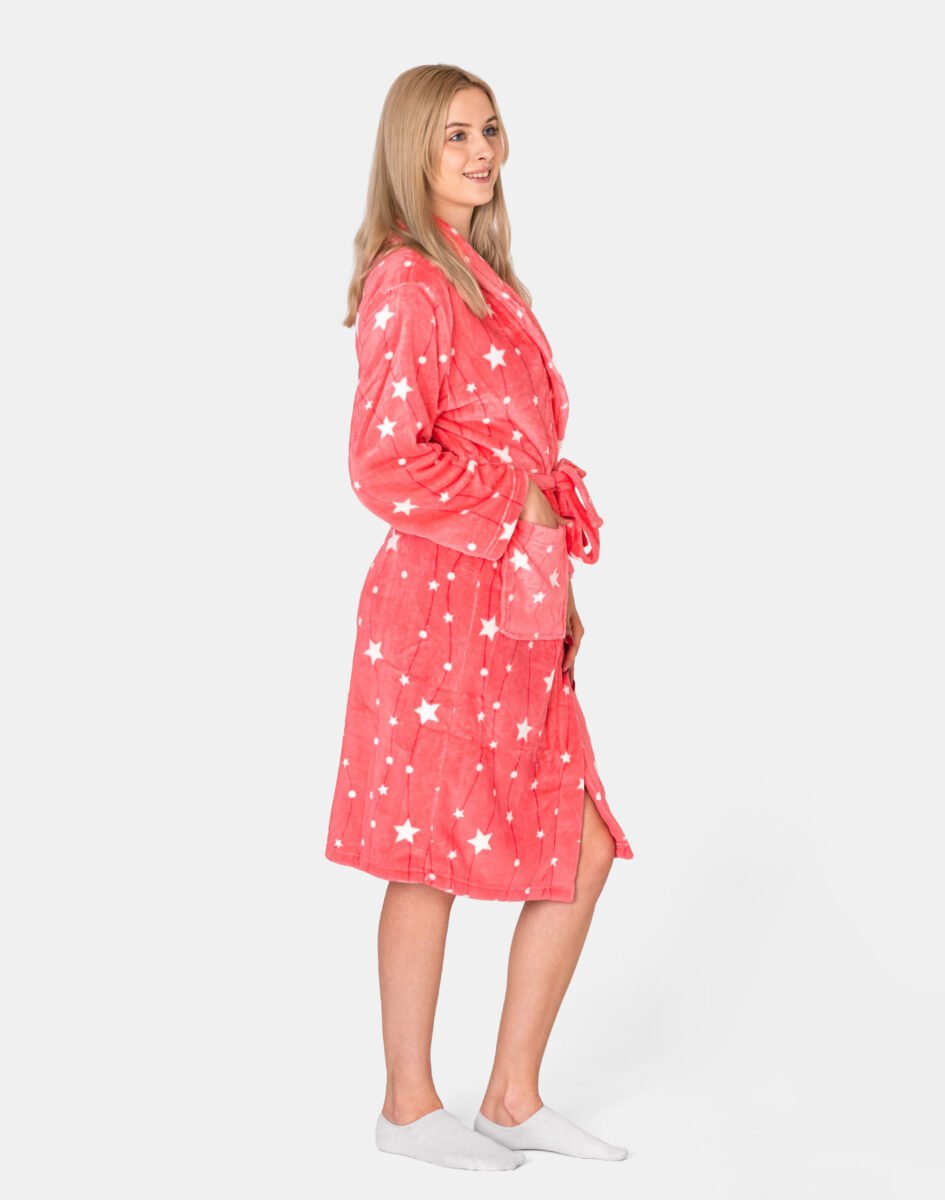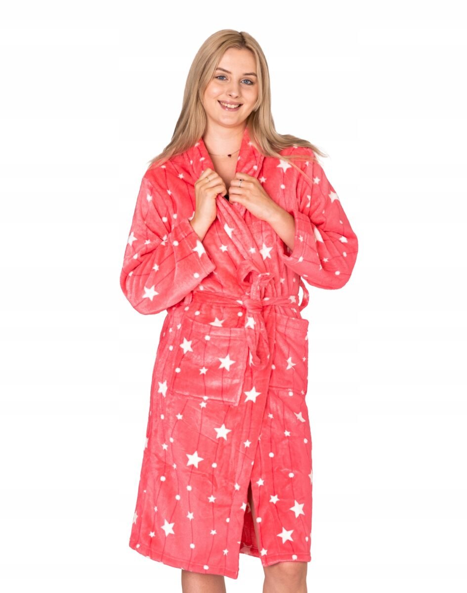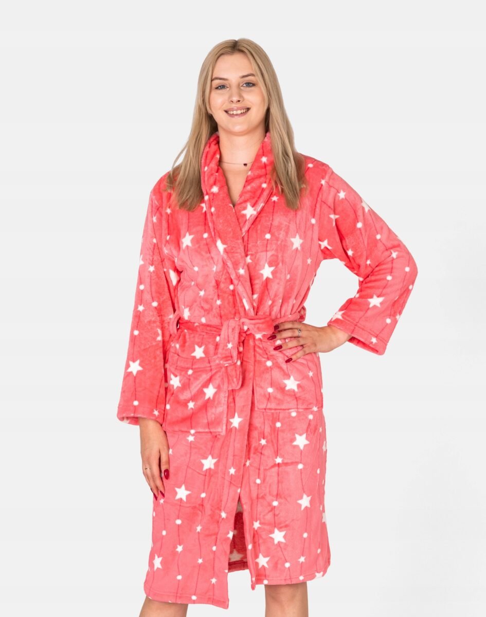 Ciepły szlafrok z pluszowego futerka "Wellsoft", to idealne okrycie wierzchnie na chłodne wieczory czy też poranki zwłaszcza po kąpieli gdy trzeba wyjść spod rozgrzewającego strumienia wody, jak również na relaks w każdej innej postaci. Na przodzie dwie naszywane proste kieszenie w których można schować niezbędne małe akcesoria, takie jak chusteczki higieniczne albo telefon jak również ogrzać dłonie. Dołączone paski (jeden wewnątrz, a drugi na zewnątrz szlafroka) umożliwiają nie tylko przewiązanie się w pasie co zgrabnie podkreśli figurę, ale również jeszcze ściślejsze opatulenie przyjemnym pluszowym materiałem. Pluszowy szlafrok wspaniale otula ciało, przepuszcza powietrze pozwalając skórze oddychać i daje poczucie pełnego komfortu. Miękka, ciepła tkanina rozpieszcza skórę, a wygodny krój pozwala szczelnie otulić się po kąpieli. Idealnie sprawdza się również po pobycie w saunie, jacuzzi, rano przy krzątaniu się po mieszkaniu lub jako strój odpowiedni podczas wieczornego wypoczynku przed telewizorem i zrelaksowania po wielu godzinach spędzonych w pracy. Szlafrok o tak uroczym wyglądzie będzie będzie idealnym prezentem dla każdej kobiety!