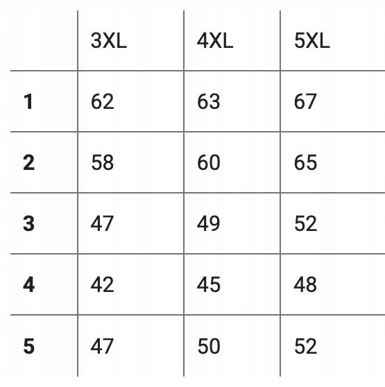 Rozmiar podany na metce przez producenta: 5XL (Sprawdź pozostałe wymiary w tabeli)