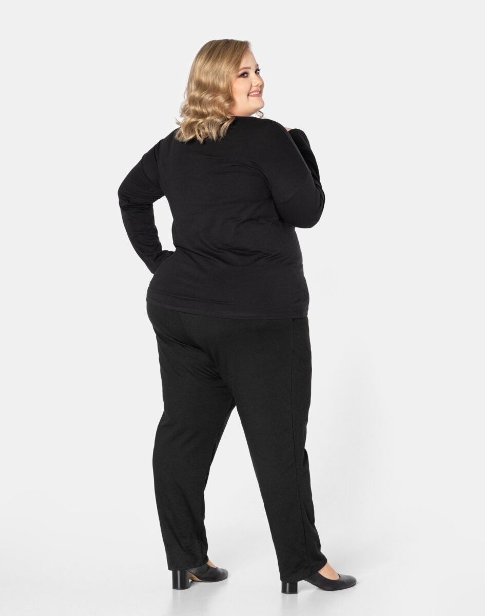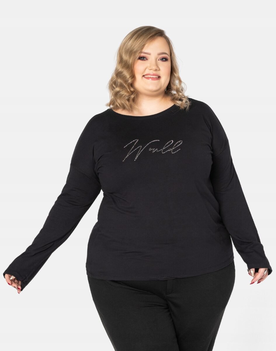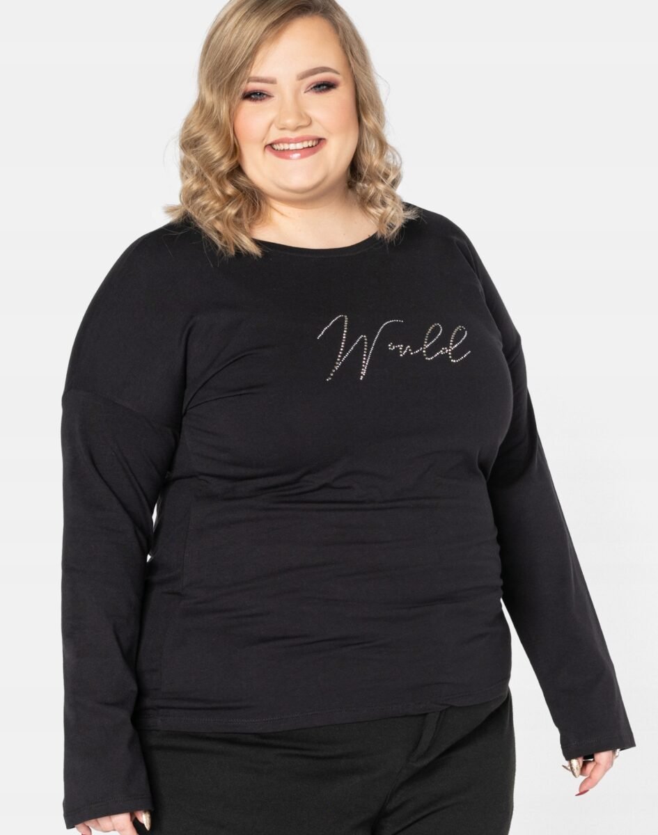 Efektowna bluzka damska, wyprodukowana z wysokiej jakości miękkiej, miłej w dotyku i przyjemnej dla ciała dzianiny bawełnianej. To idealny wybór dla każdej kobiety, bo niezależnie od typu figury, wieku, czy rozmiaru jaki nosisz zawsze będziesz w niej wyglądać elegancko, kobieco i atrakcyjnie. Klasyczna, wkładana przez głowę z długimi prostymi rękawami, ozdobiona z przodu efektowną aplikacją, wyłożoną delikatnymi cyrkoniami. Możesz ją śmiało nosić do eleganckich spodni, spódnic czy też na sportowo do legginsów. Bluzkę w tym kolorze możesz założyć niemal do każdej stylizacji. Tworzy doskonałe zestawienie z wąskimi spodniami (rurki, cygaretki), dopasowanymi dżinsami i jest świetnym uzupełnieniem casualowych stylizacji. Elegancki i prosty krój fantastycznie pasować będzie do pracy, jak i na wieczorne wyjście z przyjaciółmi.