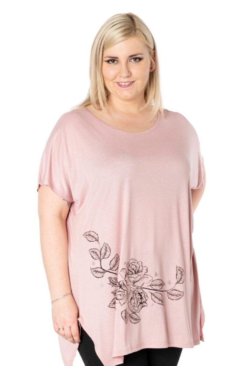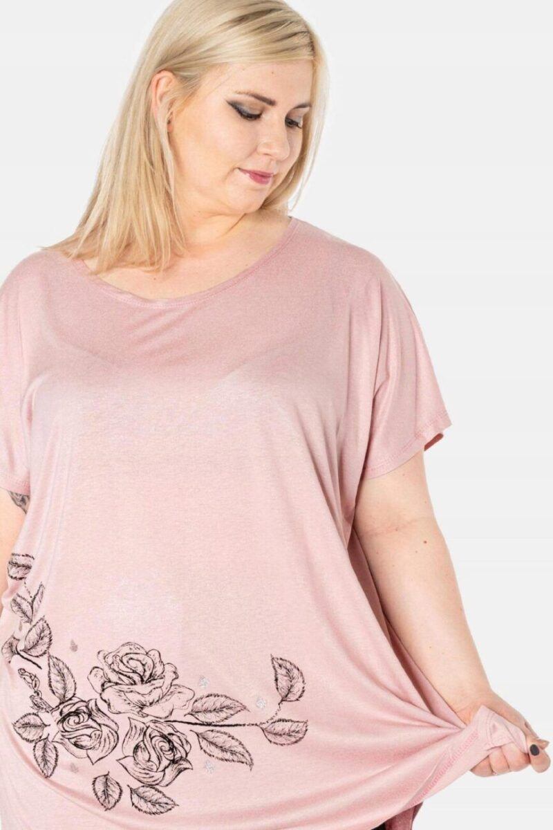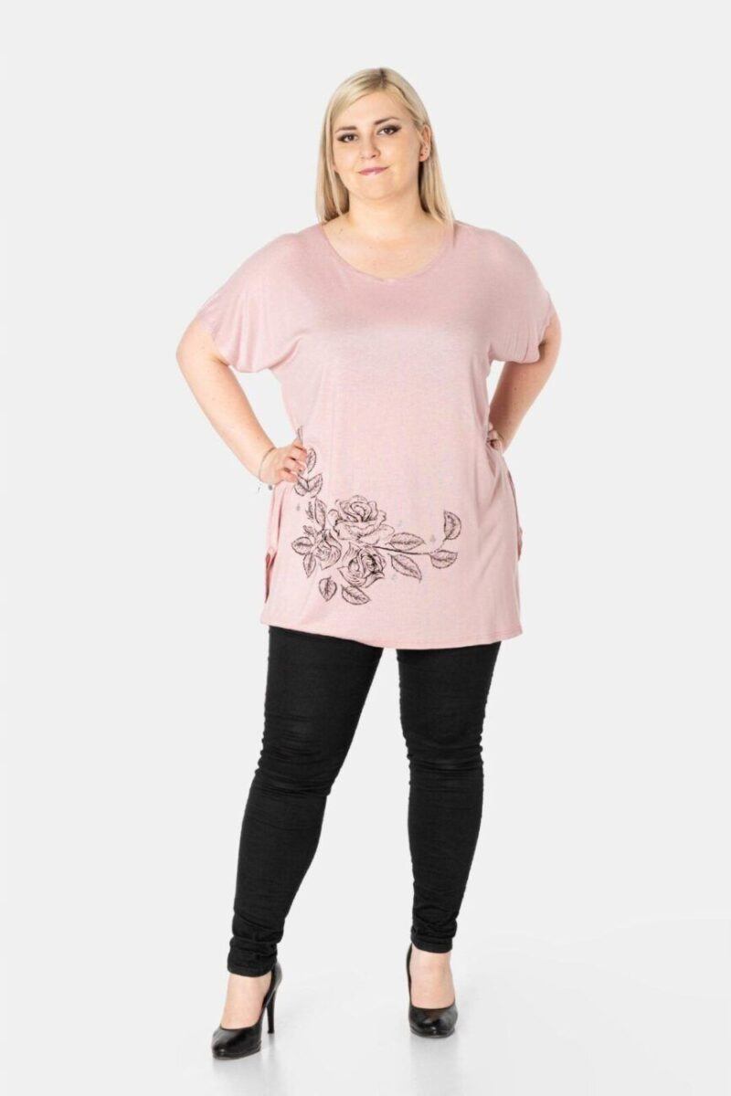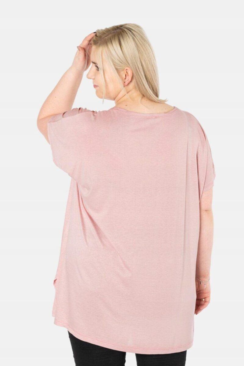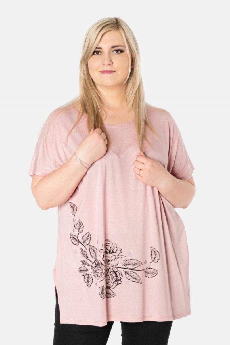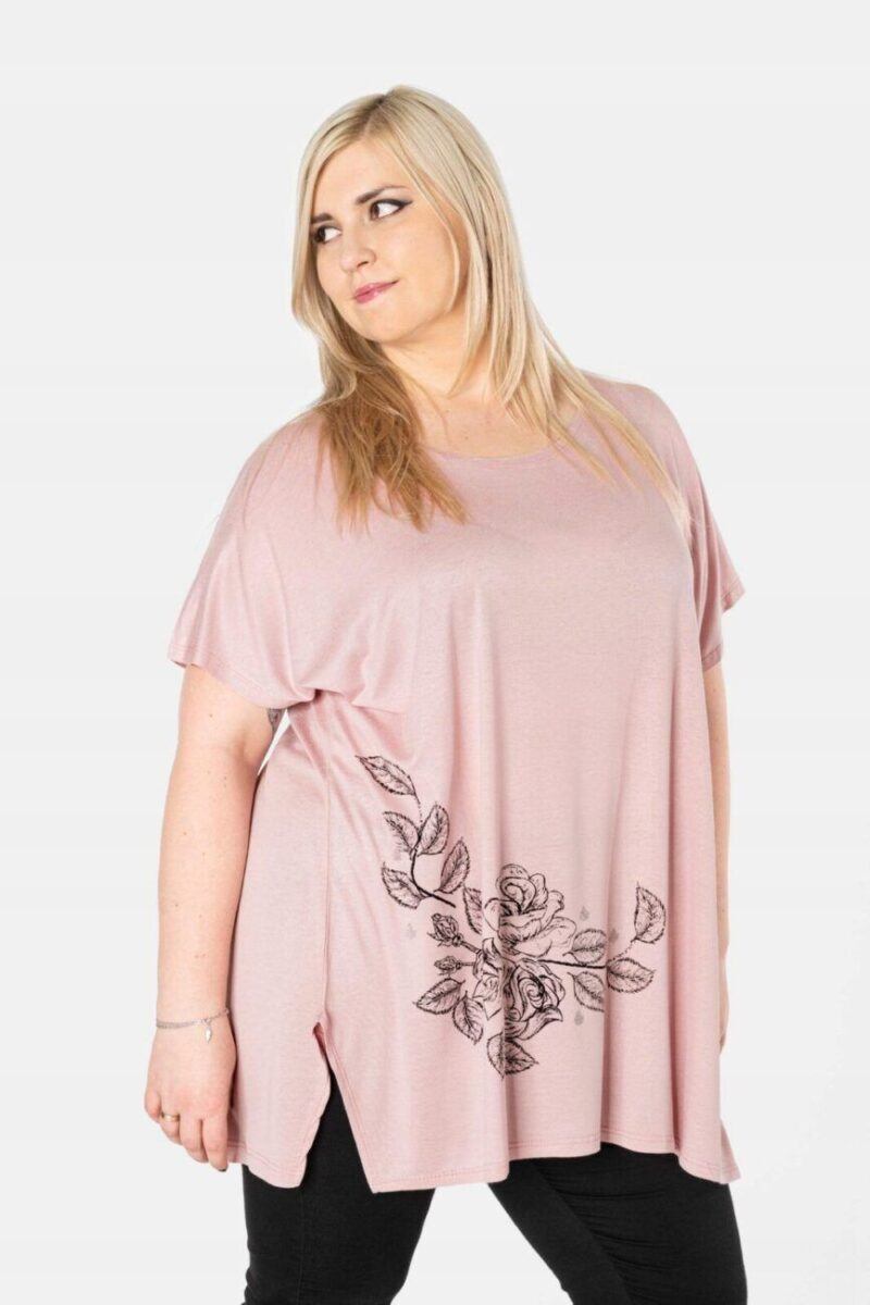 Efektowna długa bluzka/tunika damska, wyprodukowana z wysokiej jakości elastycznej, miłej w dotyku i przyjemnej dla ciała cienkiej dzianiny wiskozowej, zapewniającej maksymalną wygodę i komfort użytkowania. To idealny wybór dla każdej kobiety, bo niezależnie od typu figury, wieku, czy rozmiaru jaki nosisz zawsze będziesz w niej wyglądać elegancko, kobieco i atrakcyjnie. Klasyczna, wkładana przez głowę z okrągłym dekoltem i rękawami typu „motyl”, ozdobiona z przodu efektowną ciekawą aplikacją. Długość midi, która z powodzeniem zakrywa biodra. Dół bluzki szeroki, luźny z rozcięciami na bokach. Możesz ją śmiało nosić do eleganckich spodni, spódnic czy też na sportowo do legginsów. Tworzy doskonałe zestawienie z wąskimi spodniami (rurki, cygaretki), dopasowanymi dżinsami bo spodnie powinny stanowić przeciwwagę do obszernej bluzki/tuniki. Elegancki, prosty i luźny krój fantastycznie pasować będzie zarówno do pracy, jak i na wieczorne wyjście z przyjaciółmi. Uratuje cię w sytuacji, gdy nie będziesz miała czasu na wymyślanie, w co się ubrać.