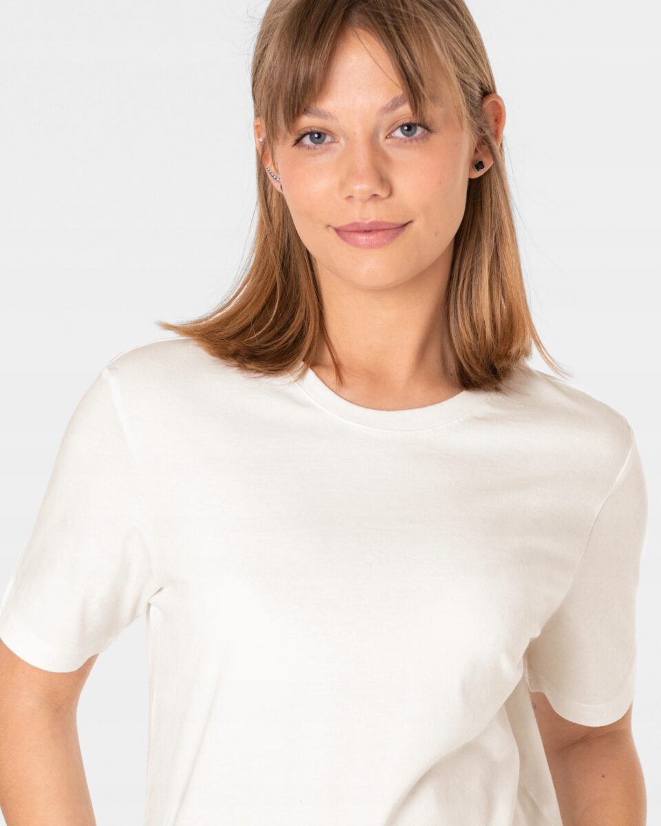 Komfortowa koszulka damska Basic do codziennego użytku z krótkim rękawem i okrągłym, atrakcyjnie wyciętym dekoltem to idealne połączenie kobiecości i komfortu. Klasyczna, gładka bez nadruków w jednolitym kolorze to fantastyczna propozycja na letni, codzienny strój charakteryzujący się wygodą i funkcjonalnością. Letnie wakacje nad morzem, wieczorny spacer, czy nawet zwiedzanie najpiękniejszych europejskich miast to właśnie chwile, gdy możesz czuć się atrakcyjna, piękna i jednocześnie nieskrępowana.