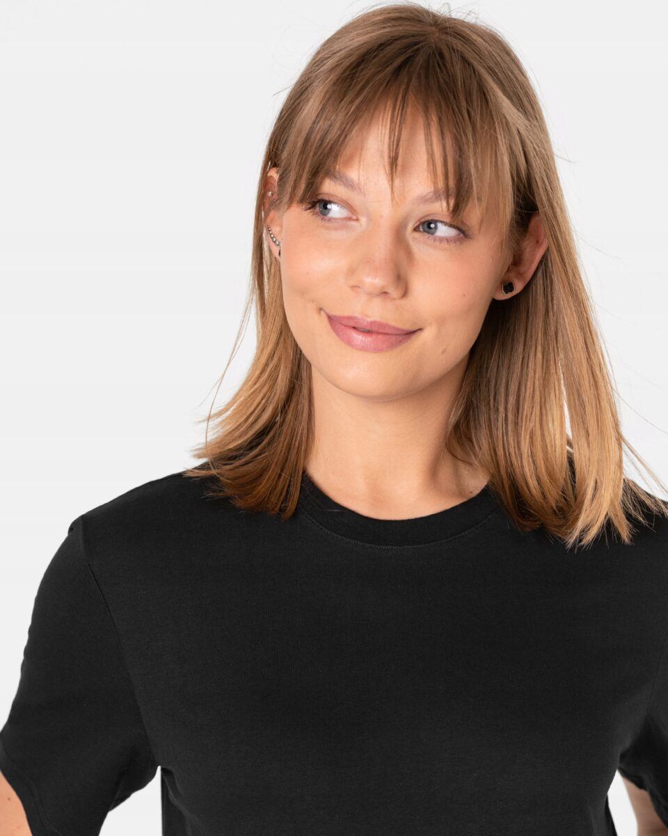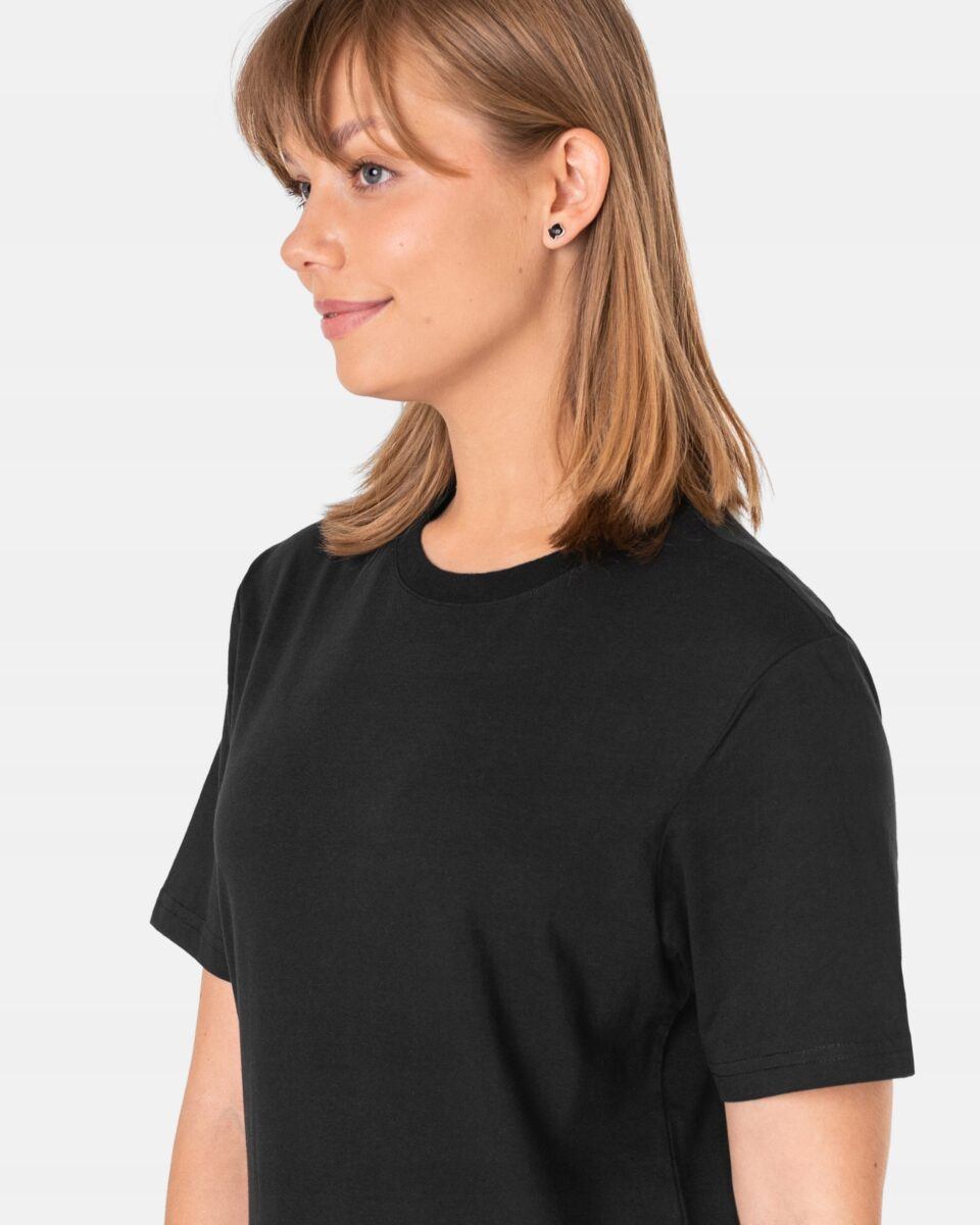 Komfortowa koszulka damska Basic do codziennego użytku z krótkim rękawem i okrągłym, atrakcyjnie wyciętym dekoltem to idealne połączenie kobiecości i komfortu. Klasyczna, gładka bez nadruków w jednolitym kolorze to fantastyczna propozycja na letni, codzienny strój charakteryzujący się wygodą i funkcjonalnością. Letnie wakacje nad morzem, wieczorny spacer, czy nawet zwiedzanie najpiękniejszych europejskich miast to właśnie chwile, gdy możesz czuć się atrakcyjna, piękna i jednocześnie nieskrępowana.