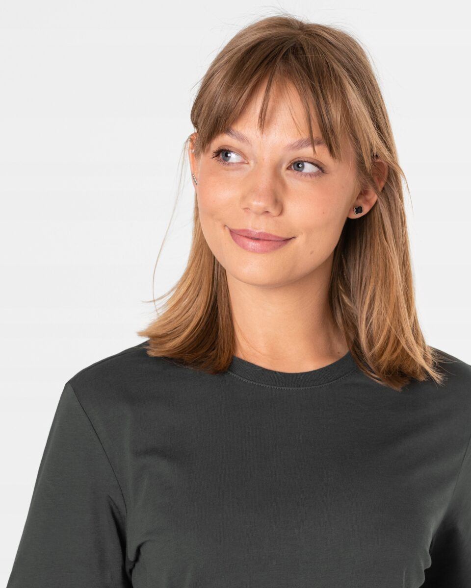 Wysokiej jakości dzianina bawełniana jest oddychająca, odporna na promieniowanie UV, elastyczna, rozciągliwa w czterech kierunkach, idealnie dopasowuje się i jest bardzo komfortowa. Przyjemna w dotyku, nie prześwituje i jest odporna na zmechacenie, a dzięki silikonowaniu włókien w procesie produkcji idealnie gładka. Koszulka nie ogranicza ruchów, a niewielka gramatura pozytywnie wpływa na komfort użytkowania w ciepłe i gorące dni wiosny i lata. Trwałe i elastyczne wykończenie bluzki (użycie do produkcji elastycznych nici) gwarantuje komfort i wygodę jej użytkownikowi w każdych warunkach. Możesz w niej chodzić na co dzień z gwarancją znakomitego nastroju i poczuciem wolności, a jednocześnie świadomością, że Twój look nawiązuje do zawsze aktualnych trendów w modzie kobiecej.