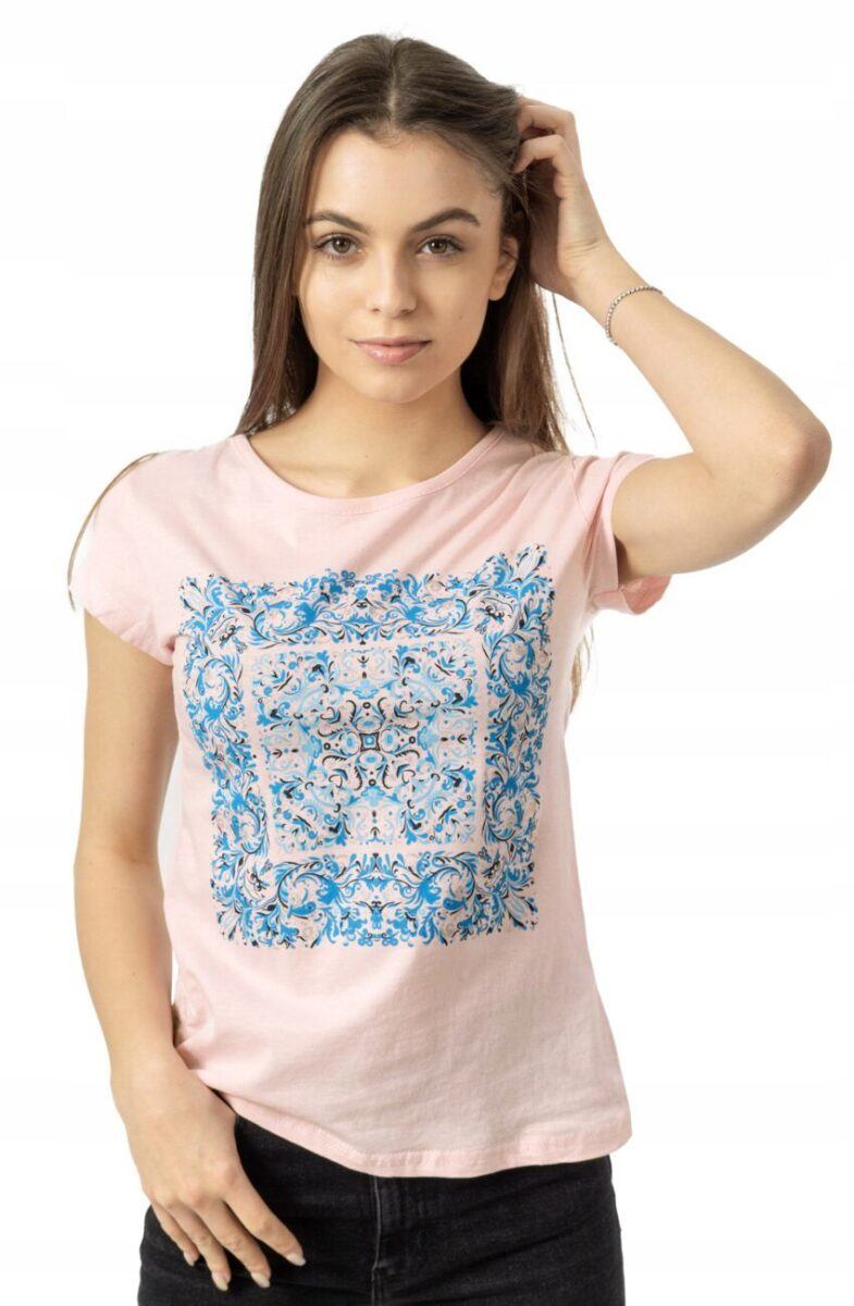 Koszulka Bluzka Damska Bawełniana z efektownym nadrukiem