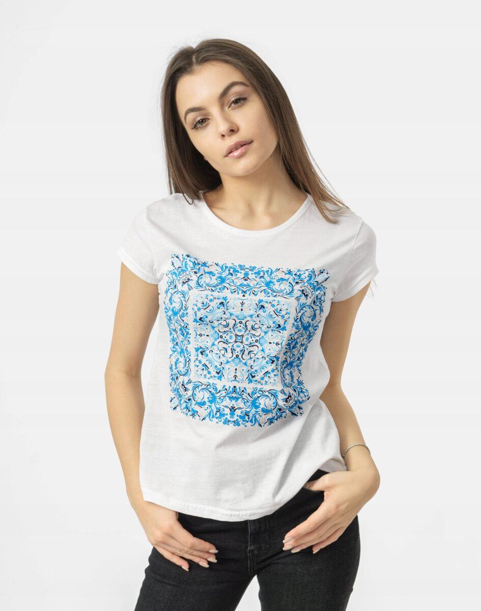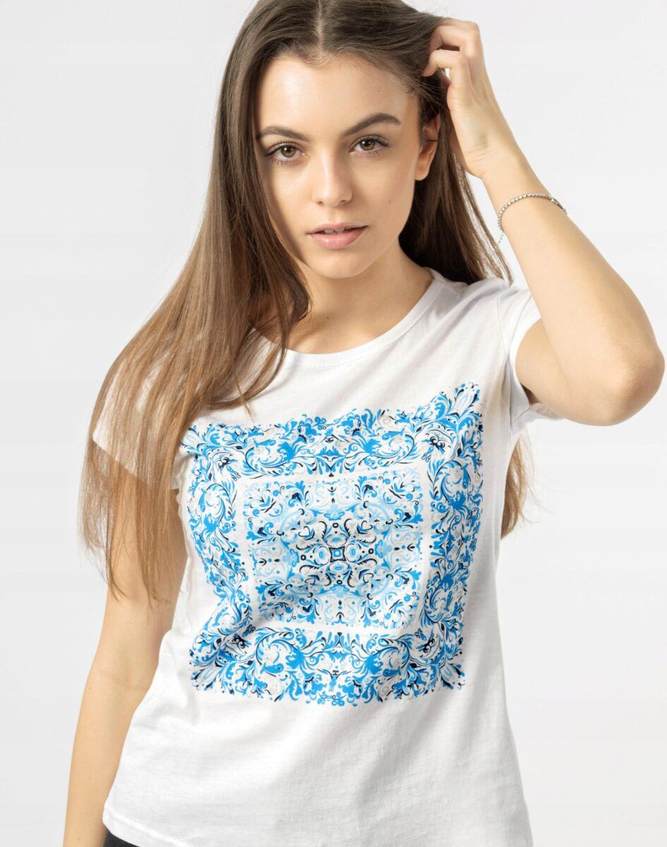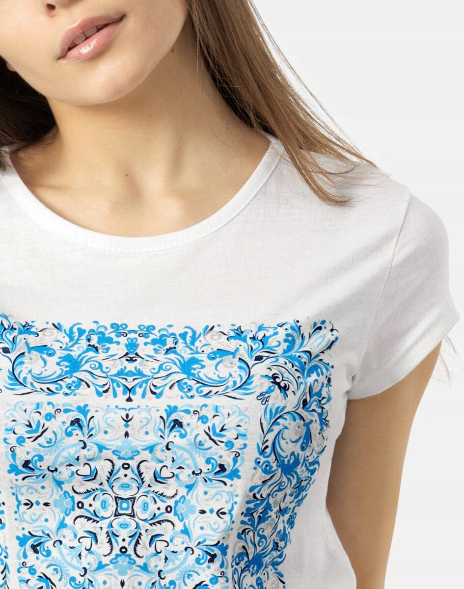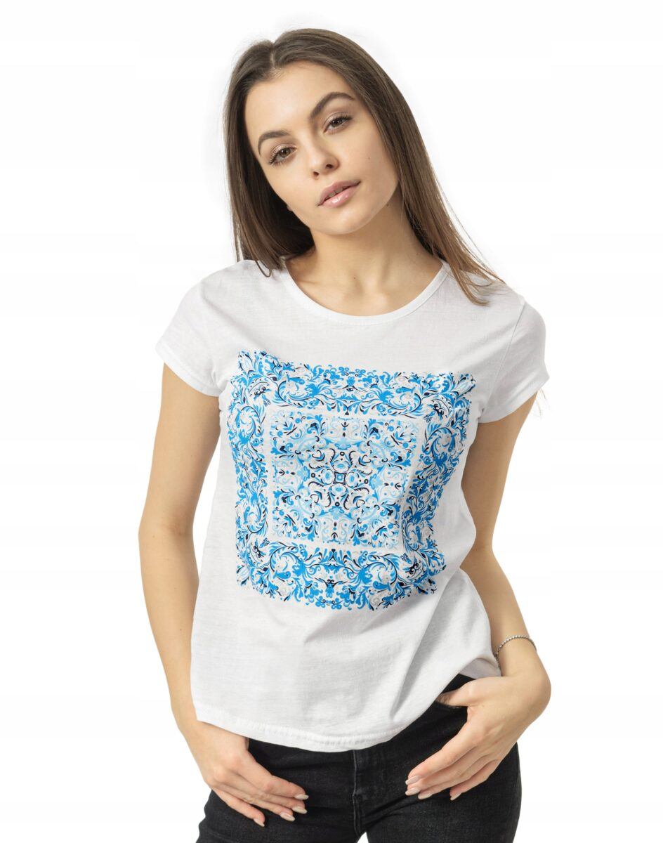 Koszulka Bluzka Damska Bawełniana z efektownym nadrukiem