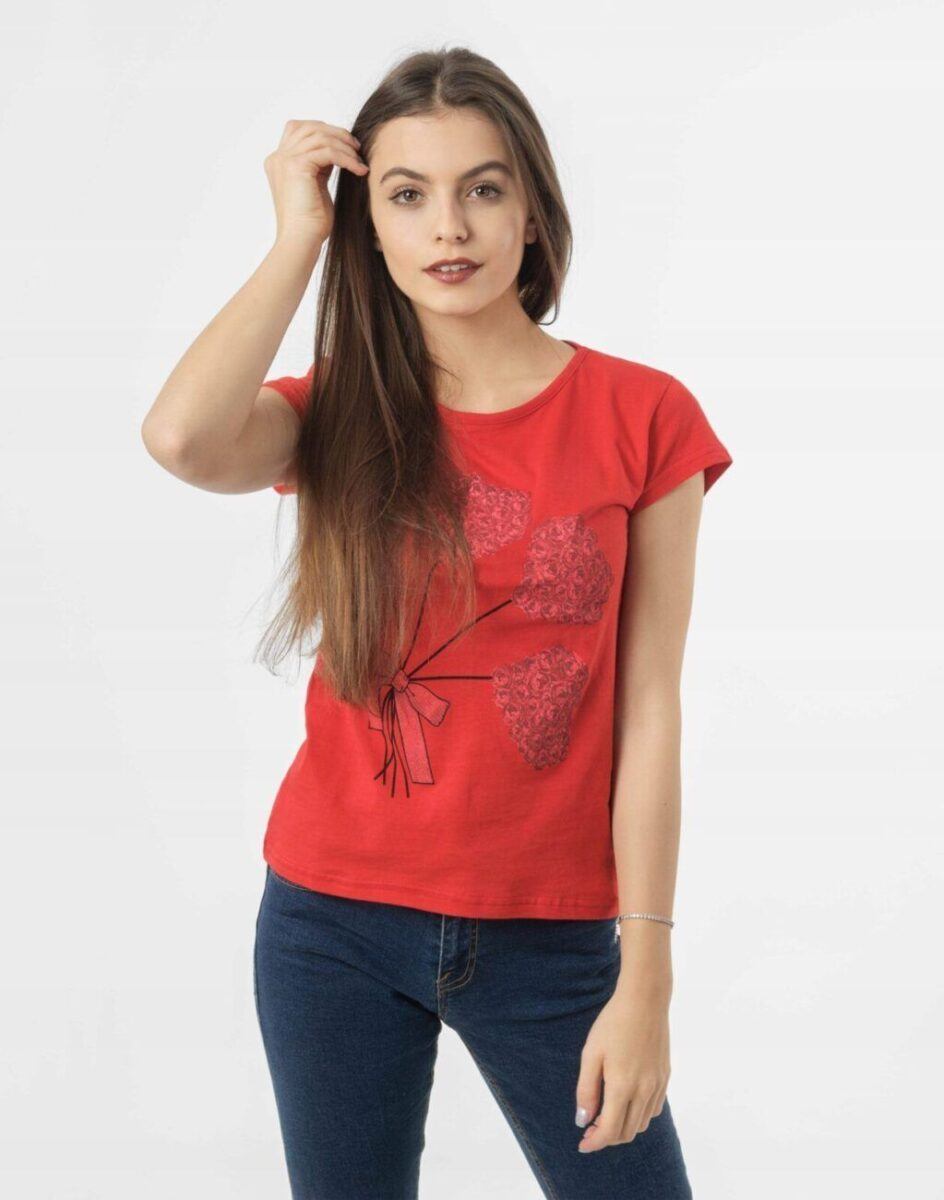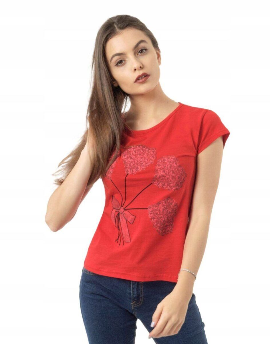 Koszulka Bluzka Damska Bawełniana z efektownym nadrukiem