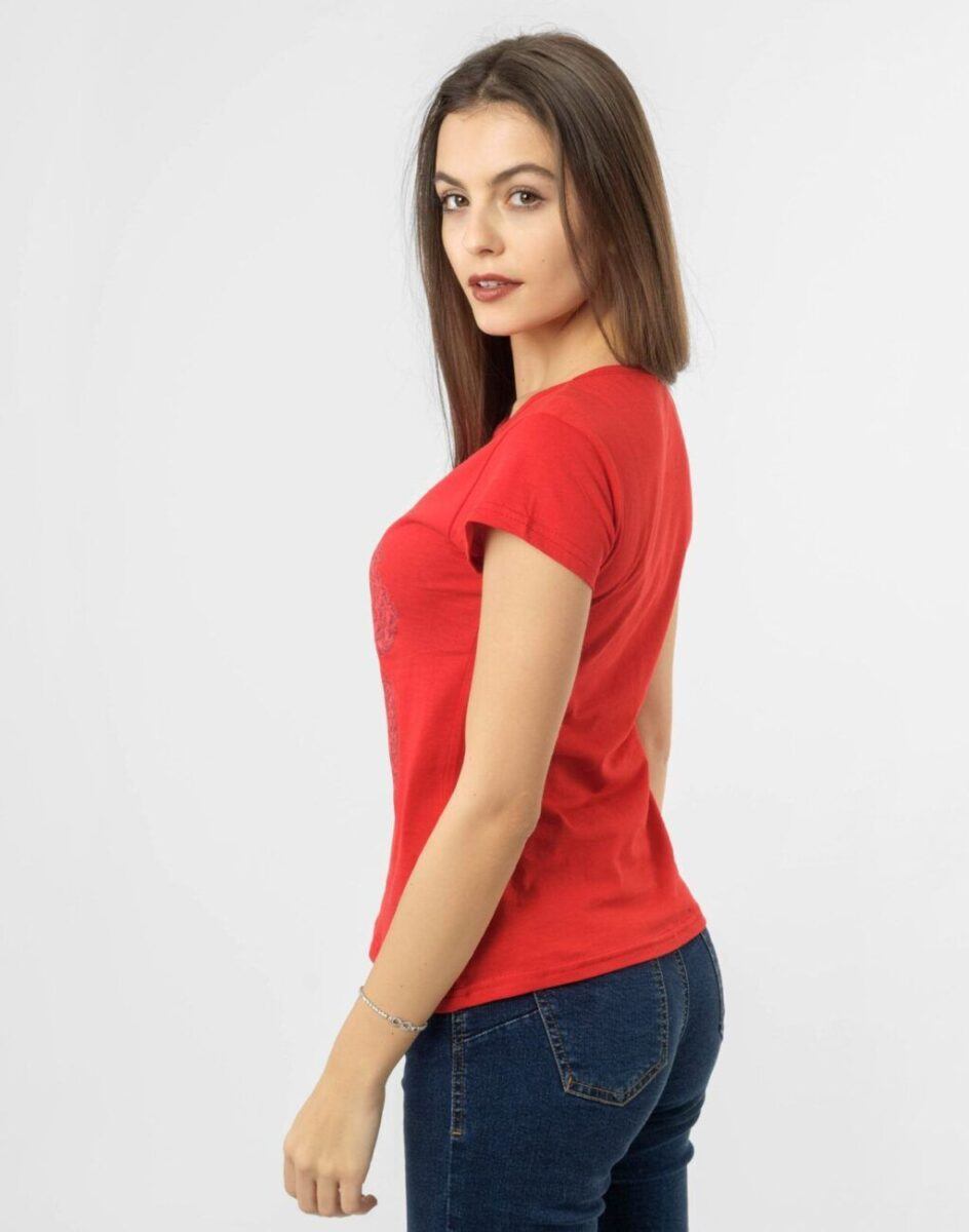 Komfortowa bluzka damska do codziennego użytku z krótkim rękawem i okrągłym dekoltem. Z przodu naniesiony trwałym termonadrukiem efektowny wzór w nowoczesnym designie. Tył gładki, jednolity. Wykonana z naturalnej, miękkiej, organicznej bawełny, o gramaturze 140g/m2 zapewniającej maksymalną wygodę i komfort użytkowania. Odpowiedni krój koszulki nie ogranicza swobody ruchów, a niewielka gramatura pozytywnie wpływa na komfort użytkowania w ciepłe i gorące dni wiosny i lata. Zapewni Ci atrakcyjny modny wygląd i jednocześnie sportowy charakter!