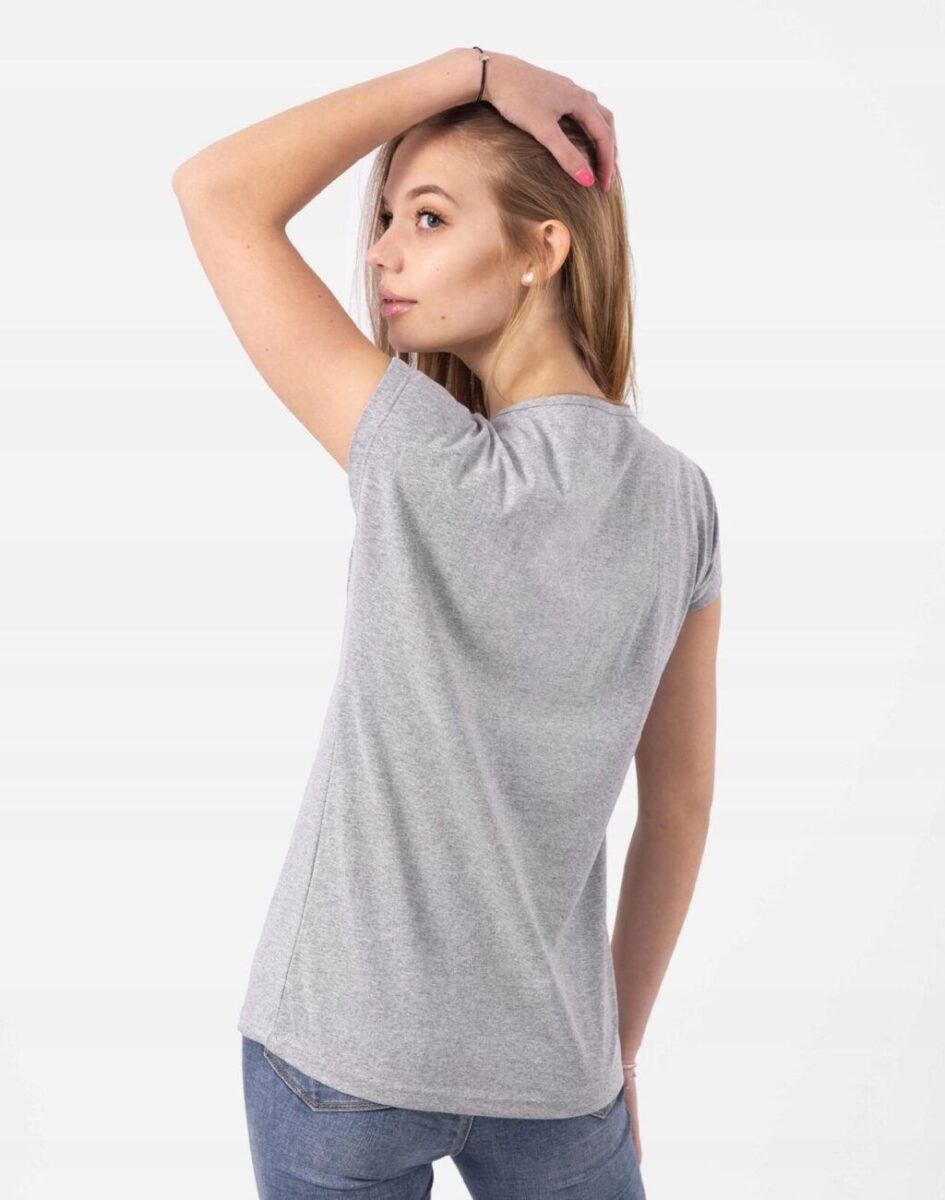 Komfortowa bluzka damska do codziennego użytku z krótkim rękawem i okrągłym dekoltem. Z przodu naniesiony trwałym termonadrukiem efektowny wzór w nowoczesnym designie. Tył gładki, jednolity. Wykonana z naturalnej, miękkiej, organicznej bawełny, o gramaturze 140g/m2 zapewniającej maksymalną wygodę i komfort użytkowania. Odpowiedni krój koszulki nie ogranicza swobody ruchów a niewielka gramatura pozytywnie wpływa na komfort użytkowania w ciepłe i gorące dni wiosny i lata. Zapewni Ci atrakcyjny modny wygląd i jednocześnie sportowy charakter!