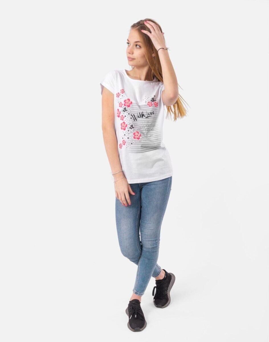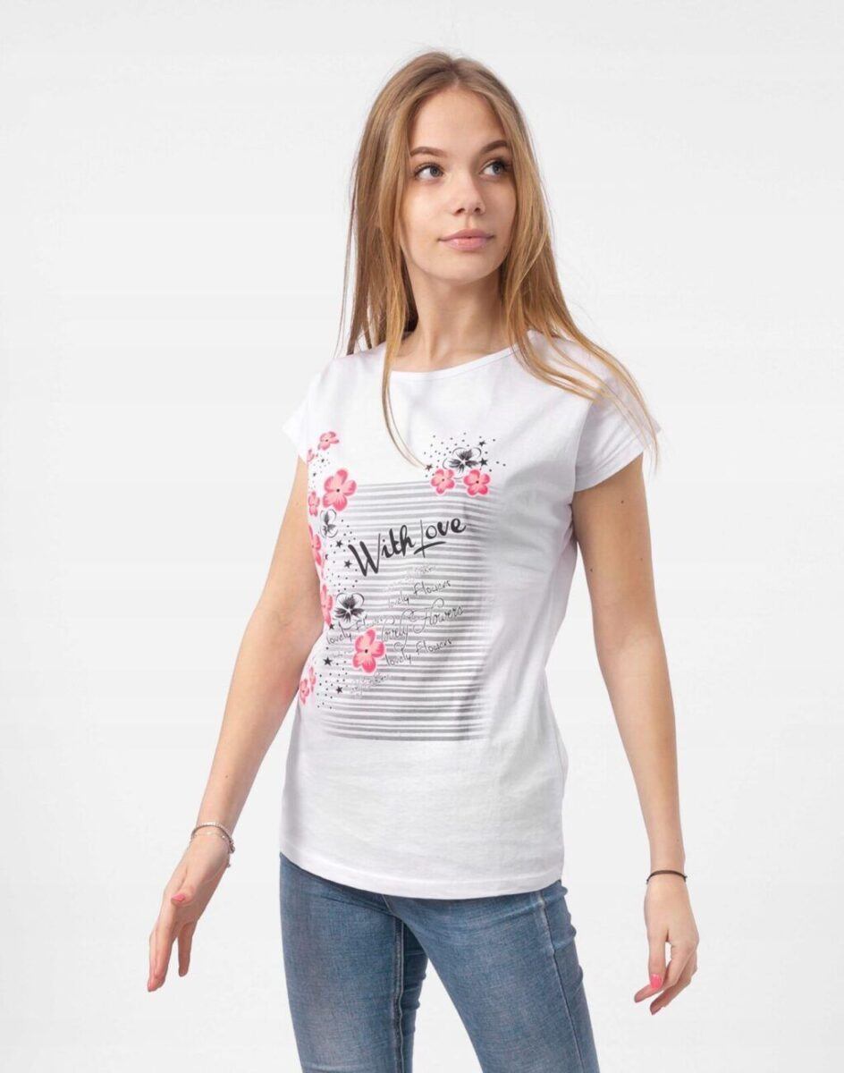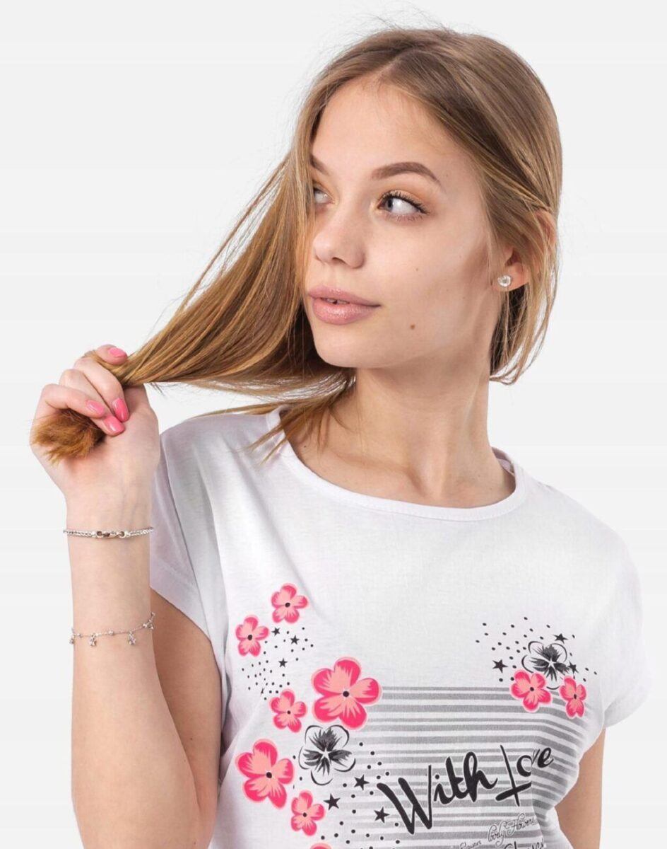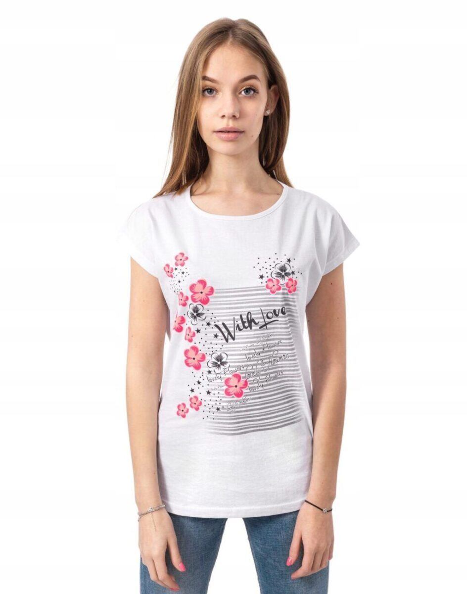 Koszulka Bluzka Damska Bawełniana z efektownym nadrukiem