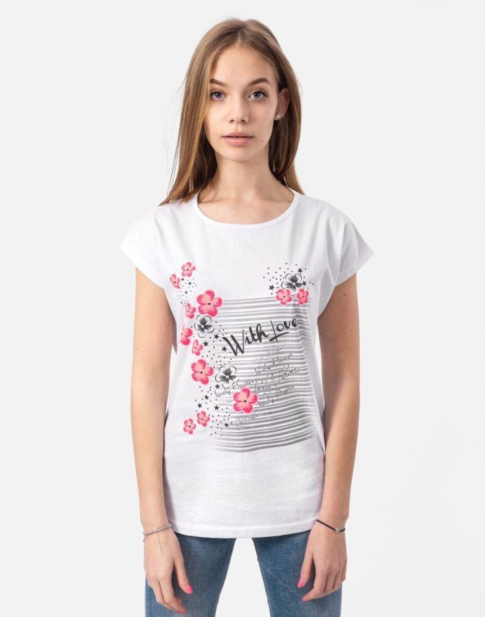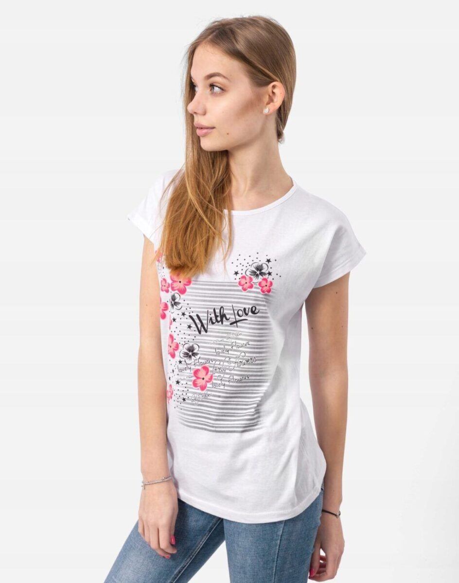 …to wygodne rozwiązanie na ciepłe, gorące dni i niezbędny element kobiecej garderoby i udanych letnich stylizacji. Możesz ubrać się w nigdy niewychodzący z mody t-shirt, a w dodatku wybrać koszulkę z firmowym nadrukiem, który będzie wyjątkowy i jedyny w swoim rodzaju.