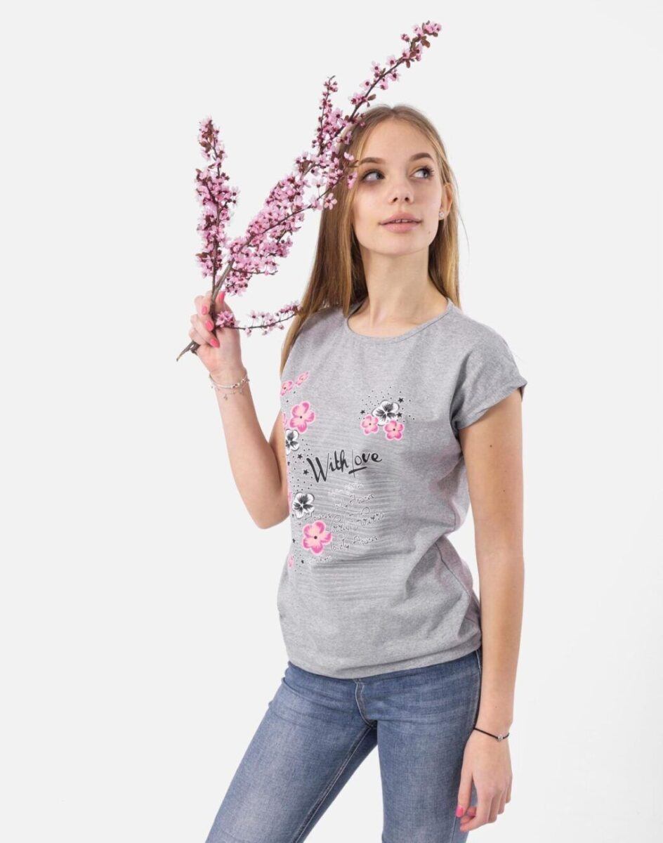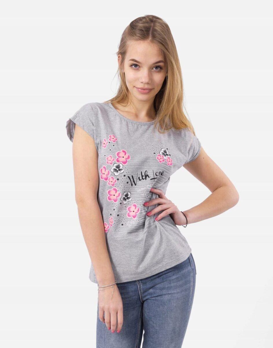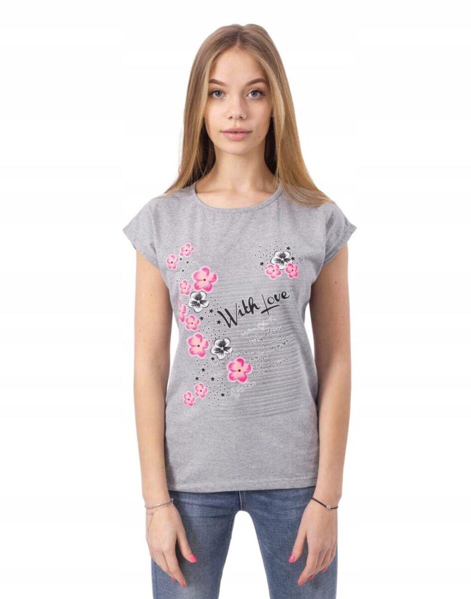 Koszulka Bluzka Damska Bawełniana z efektownym nadrukiem